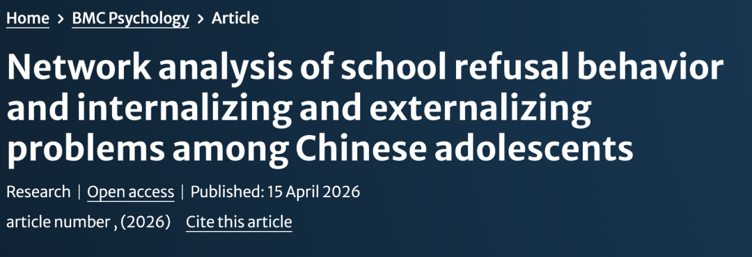 [1] Dong, C., Mao, X., Hu, H. et al. Network analysis of school refusal behavior and internalizing and externalizing problems among Chinese adolescents. BMC Psychol (2026). https://doi.org/10.1186/s40359-026-04494-6