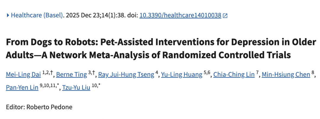 [6] Pet-Assisted Interventions for Depression in Older Adults—A Network Meta-Analysis of Randomized Controlled Trials. Healthcare, 14(1), 38.