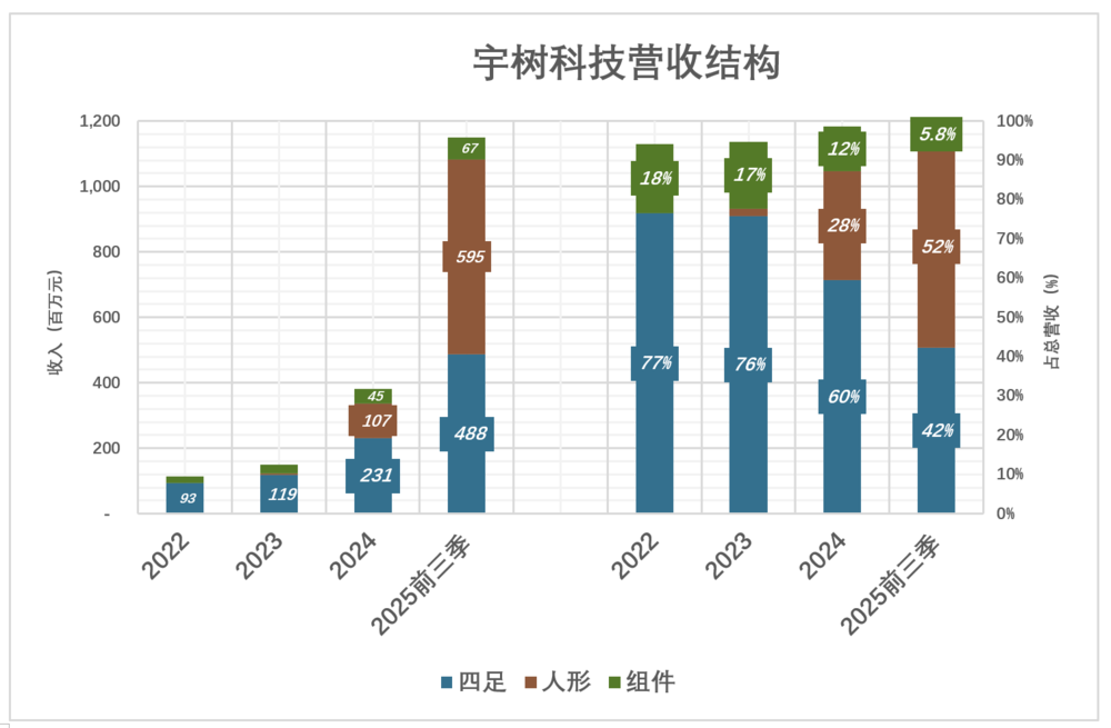 四足机器人收入2.3亿(同比增长93.1%)、占总收入的59.5%;