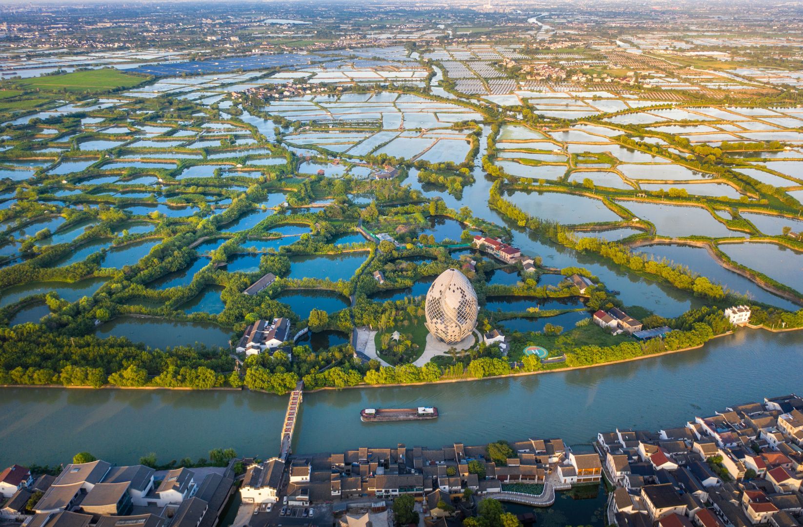 桑基鱼塘、运河、鱼茧塔(航拍)。宋元锋 摄