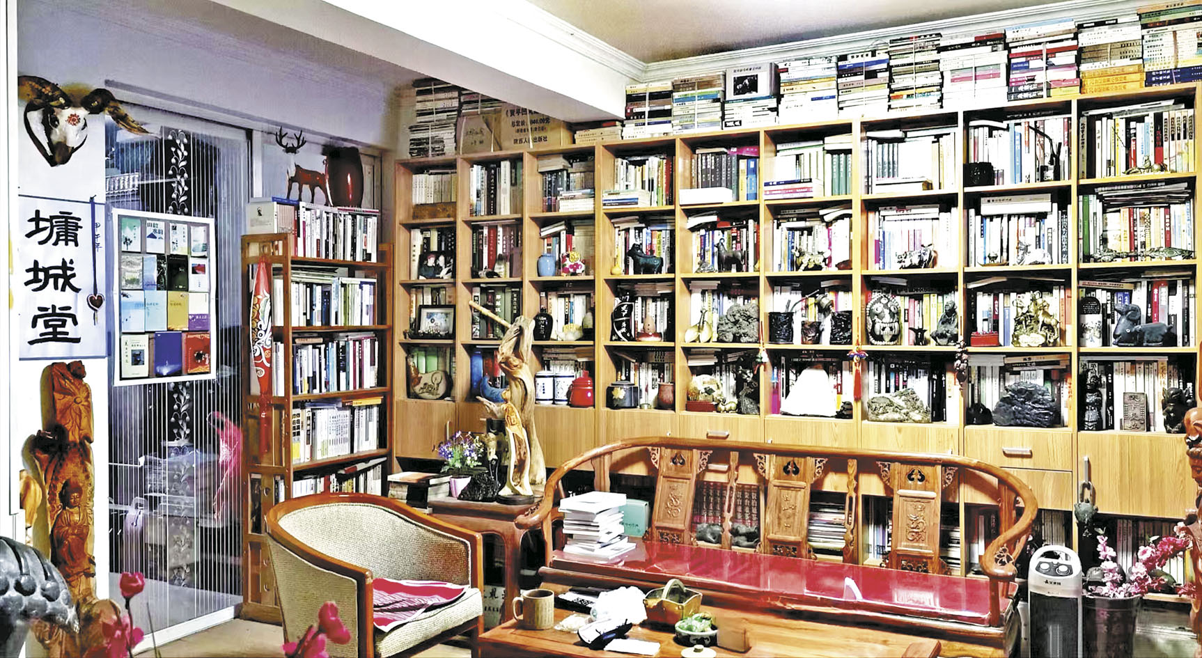 春分刚过,西安城的柳树已经绿成一片。在城墙根下的一条小巷里,《文化艺术报》的记者找到了作家陈长吟的书房——墉城堂。 推开门,满眼都是东西。书架上塞得满满当当,除了书外还摆着大大小小的相机和观音像,墙角蹲着一只凤翔泥塑羊,桌上散着一堆珠子和绳子。见我们进来,陈长吟热情地当起了“导游”,领着我们参观他的书房,讲解着每一件物件的故事。 这间书房不大,但每一寸空间都好像住着一个人,珍藏着一段记忆、一个念想。 墙上挂着一幅字,是贾平凹写的,“远源长河来,云鹤吟九天”。“长吟”二字嵌在里面,寓意深远。当年贾平凹写完这幅字告诉他,要走得远,源头必须深;要飞得高,声音才能传到九天上。 陈长吟说,这句话他记了30多年。 三个地方,三样人生 陈长吟有三个书房。 第一个在安康,取名“向江阁”。书房在汉江南岸一栋楼的十七层,站在窗前,汉江就在脚下铺开。“在那里读书、写字、品茶的时候,站在窗前就能看见汉江,心里也就安稳了。”陈长吟说,“向江”两个字有一种志向——面朝江水,心向远方。 在安康,他创作了《山梦水梦》《山韵水韵》《山亲水亲》三部曲——都跟山水有关。他用笔描绘着陕南小城的浪漫、闲适与洒脱。小城生活节奏缓慢,清晨街头巷尾忙碌而有序,傍晚人们漫步于石板路或江边栈道,享受着宁静的街道和古朴建筑带来的惬意。 20世纪90年代,陈长吟离开安康,来到西安任《美文》杂志副主编及西安市作协副主席,而后又相继担任陕西省散文学会会长、中国散文学会副会长。安康乡下的老屋太旧,他又无时间去翻修,便转让给叔父了。但为了留住乡情,他又在汉江边另购了一套小单元房,把旧书和老物搬进去,有空了回去住住,面向故园山水,那种“根”的意识就回来了。 第二个在西北大学现代学院的校园里,叫“朝山庐”。那里离秦岭只有几千米,推开窗就能看见终南山。 “我喜欢山的巍峨高大,那是一种沉稳厚重、不急不躁、不张不扬,非常有实力的象征;我喜欢山的起伏变化,一岭接一岭,层层叠叠不重复,里面藏着意想不到的奇异景观;我喜欢山上的各种树木花草、飞禽走兽,它们充盈着不尽的乐趣和活力;我喜欢山顶的烟雾演幻,峰高自留云,雨露由此生,”陈长吟笑着说,“于是给那间书房起名‘朝山庐’。” “朝山”,既是地理位置的描述,站在门口,坐在窗下,时时能看到终南山;同时,也是一种敬仰、虔诚的隐喻。李白、王维等都曾在终南山中隐居、修行。他仰敬先贤,朝着秦岭,也朝着文学的神圣殿堂,一步一步往前走。 “朝山庐”有两间平房,前面还有一个五十平方米的小院子。校园安静,树木葱郁,空气也好,没有车马喧嚣,没有灰尘飞扬。因为兼任学校文学院的院长,陈长吟每个星期要去“朝山庐”住两三天,在学校教书、研究、写作。“我喜欢坐在窗下读书写作,低头于书案久了,举首望望山,是良好的调节。” 第三个,就是城墙根下的这间“墉城堂”。离家很近,走路只需要十几分钟。 2015年元旦那天,陈长吟搬进了“墉城堂”,研墨、摊纸,挥毫写下“枕笔待旦”。“古代将士打仗休息时都把兵器枕在头下,随时准备战斗,叫枕戈待旦。我这是枕笔,随时准备写作。”陈长吟诙谐地说。 书房,对于作家来说,通常都是工作的地方。陈长吟这三个书房,对他来说,远不止是“工作的地方”。向江阁是他的来路,朝山庐是他的前行,墉城堂是他的归处。山、水、城,每一个名字里,都藏着一段人生。