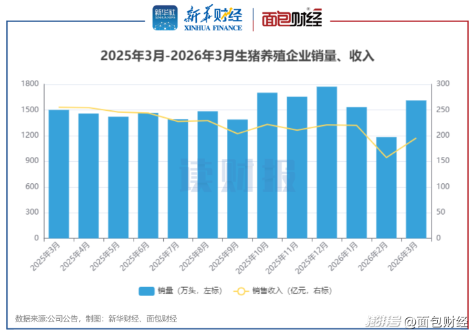 图2:2025年3月-2026年3月生猪养殖企业销量、收入