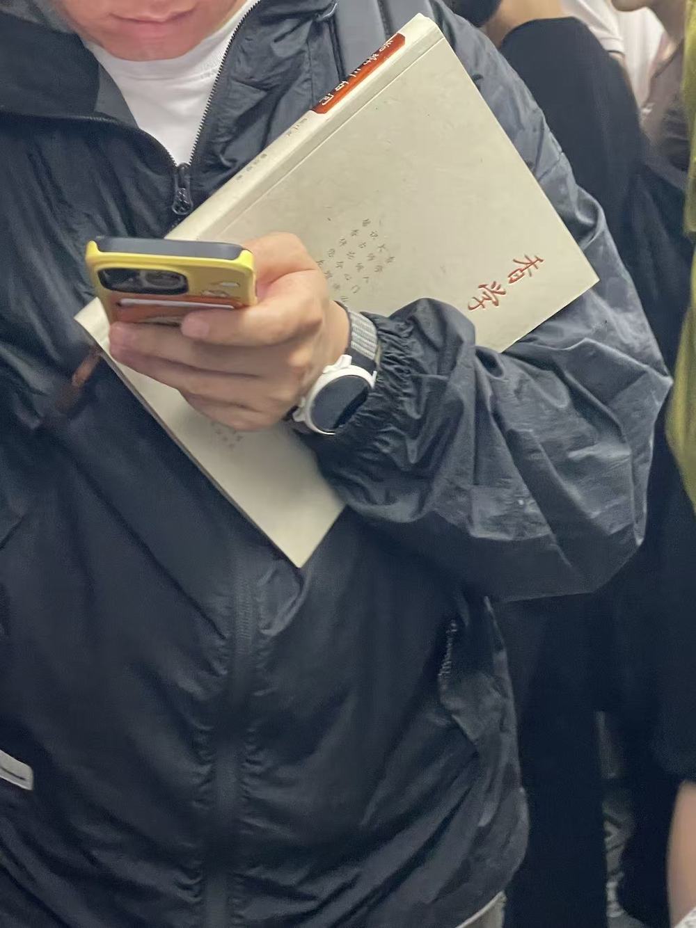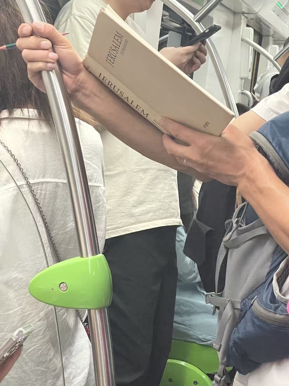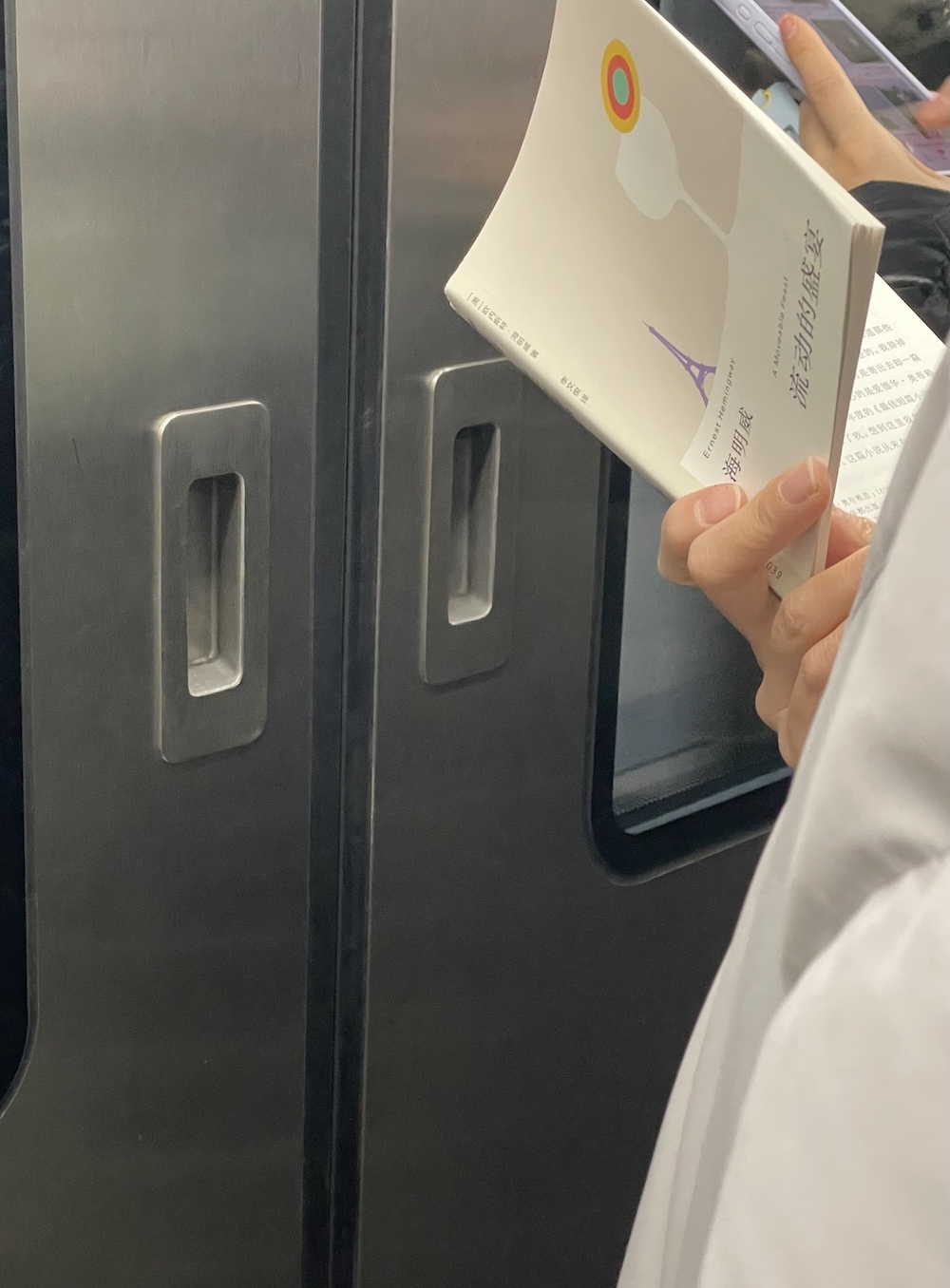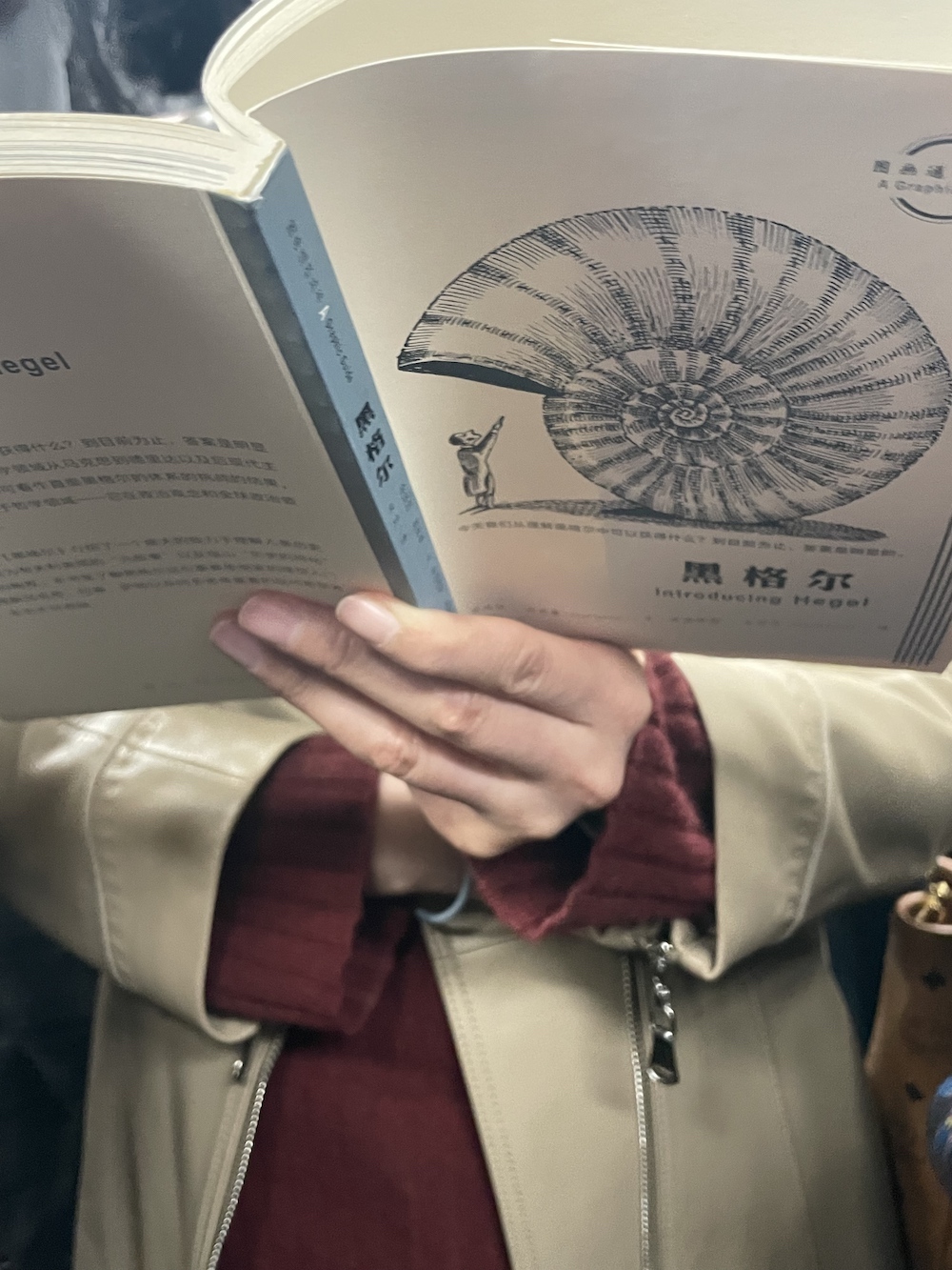 97.2026年4月1日。下班时遇到的地铁读书人,三联这套《图画通识丛书》开本小巧,不怎么厚,一本书讲一个人文主题,之前我就关注过,已经出版了几十种,不知道卖得怎么样。她读的是《黑格尔》。