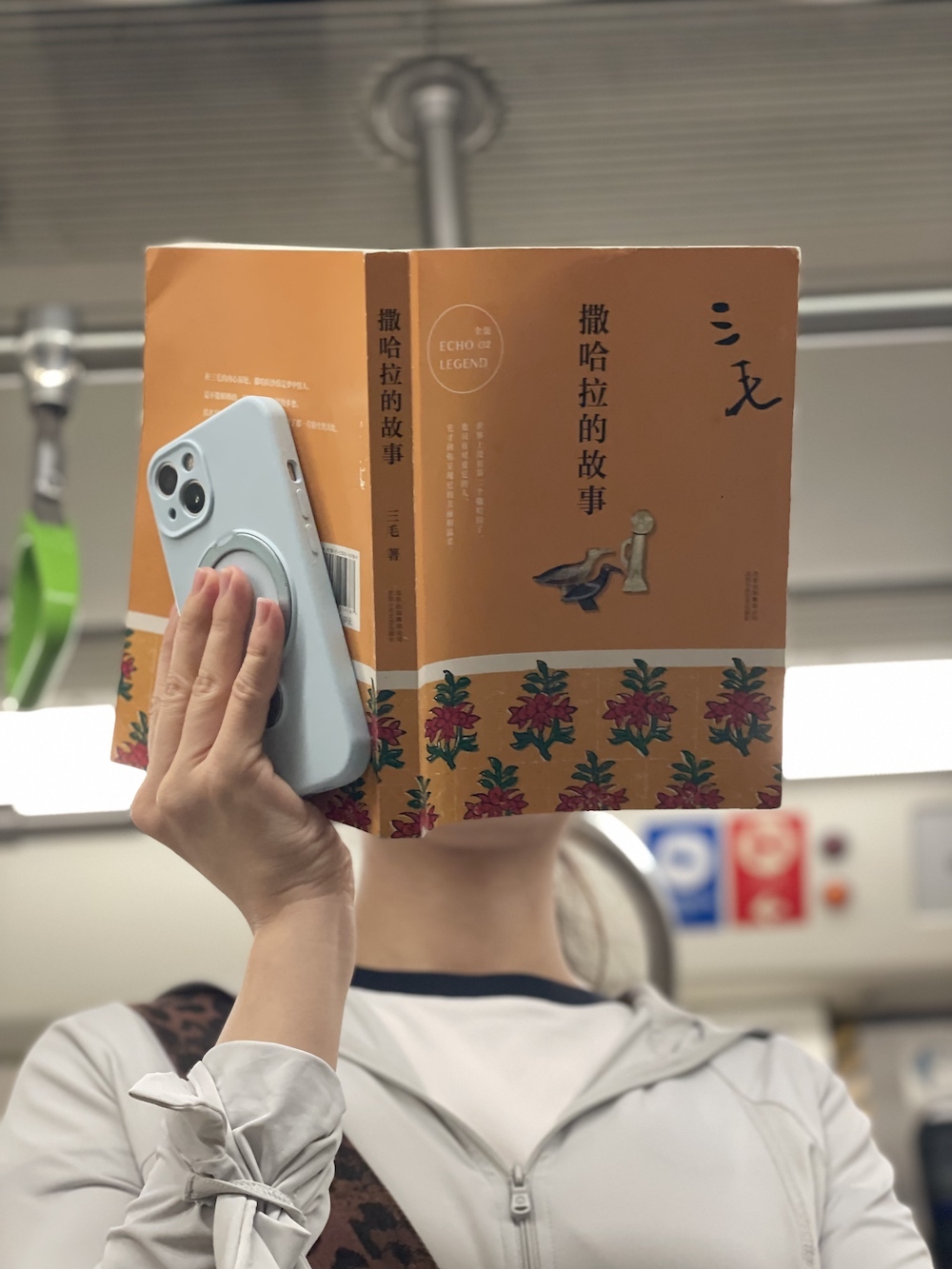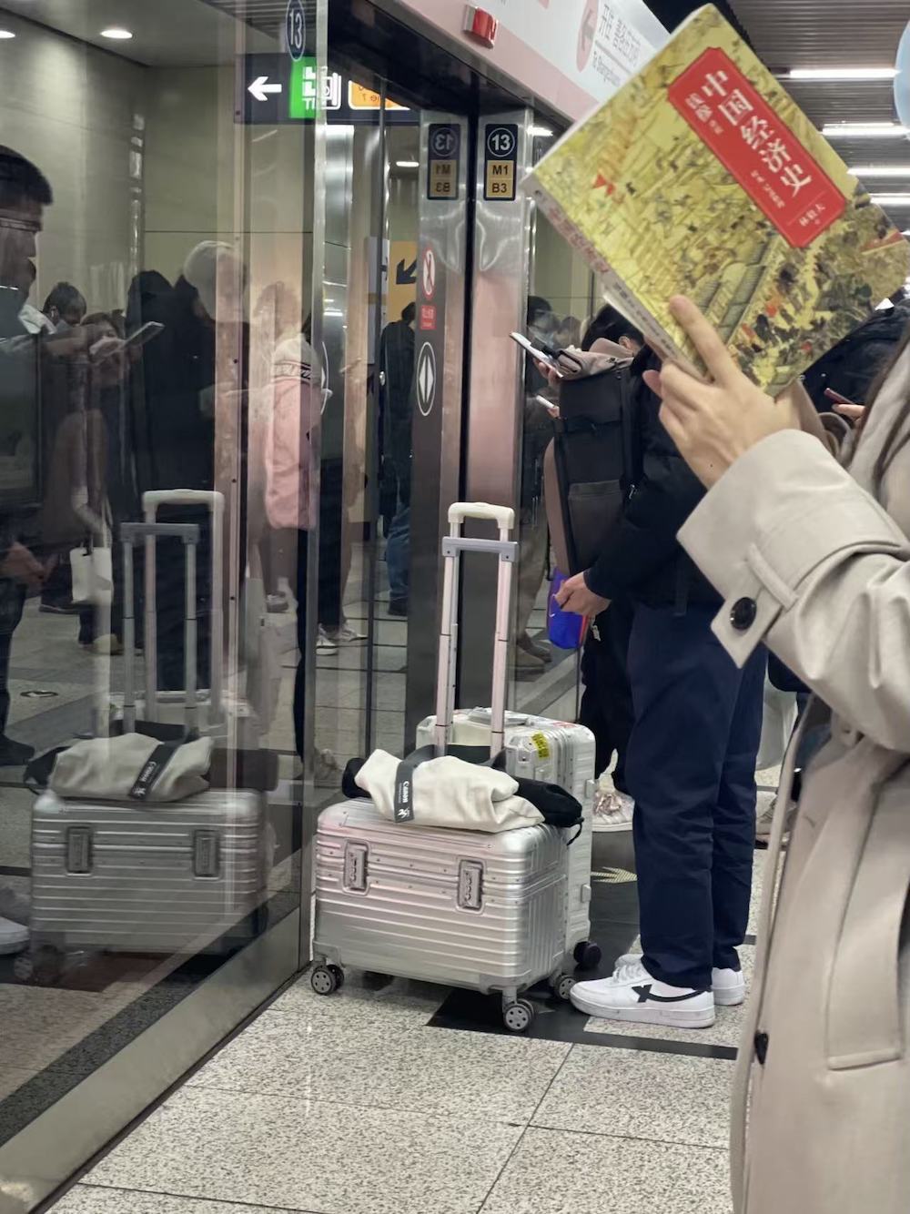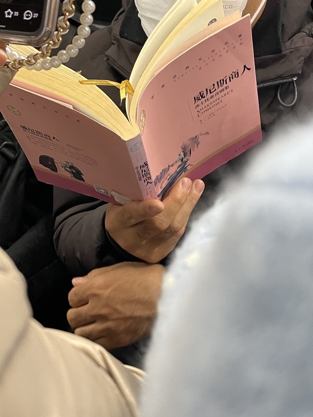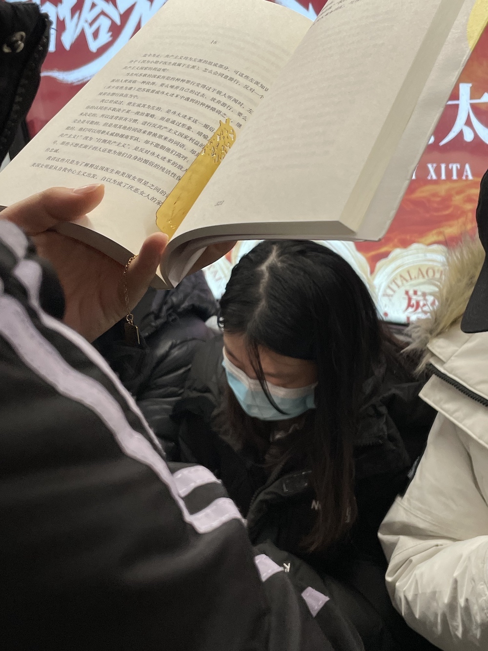 35.2026年3月19日。心里正慨叹最近没怎么遇到地铁读书人,打算打开自己的书来看,上车就看到她,她还给书套上书衣,是《漫步中国星空》,看版式设计,应该是最新的增订版吧。又,整理全年照片时发现2025年8月6日地铁上有人读这本书的前一个版本。