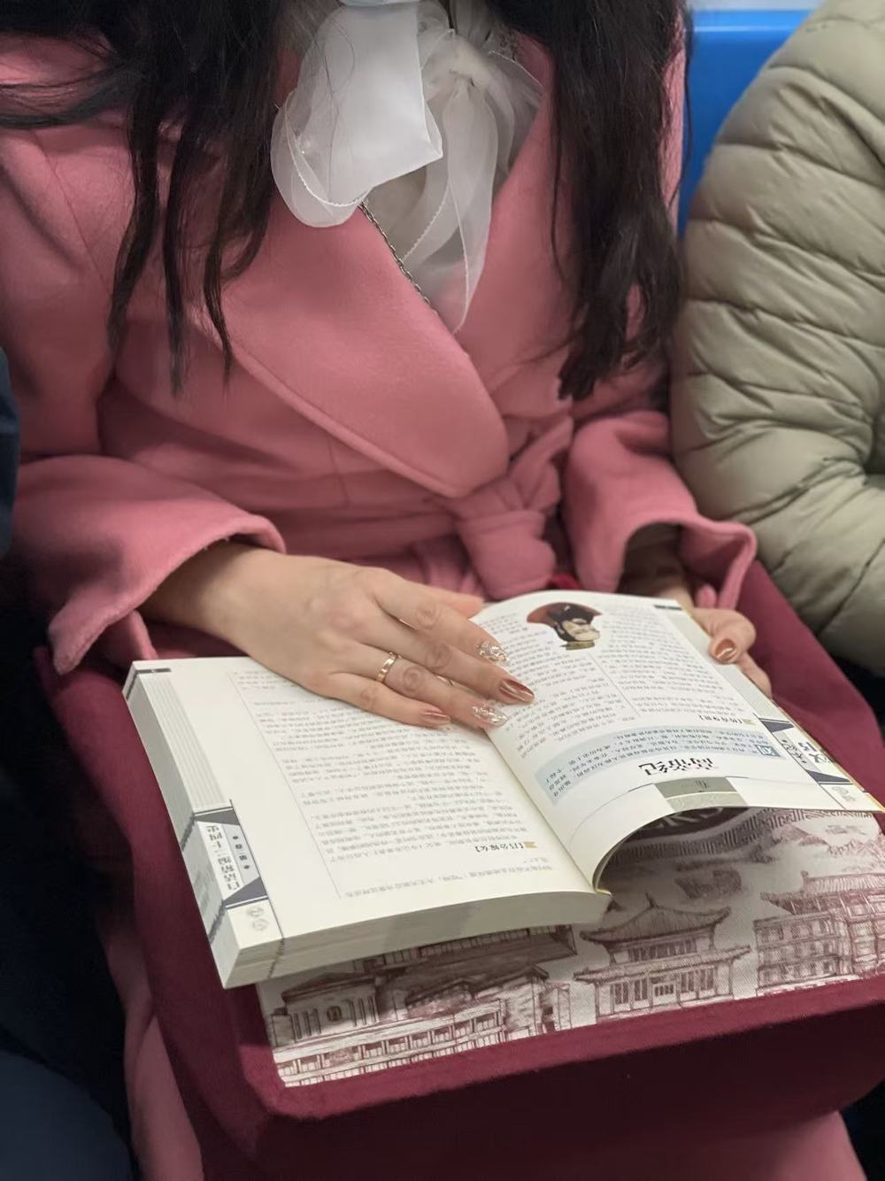 80.2025年11月12日。昨天下班时遇到的姑娘,忘记上传,她读的是王笛《中国纪事1912-1928》。看了下豆瓣,这本书最新版分两卷,880页,但看起来她读的一卷就超过500页了,不确定是哪个版本。