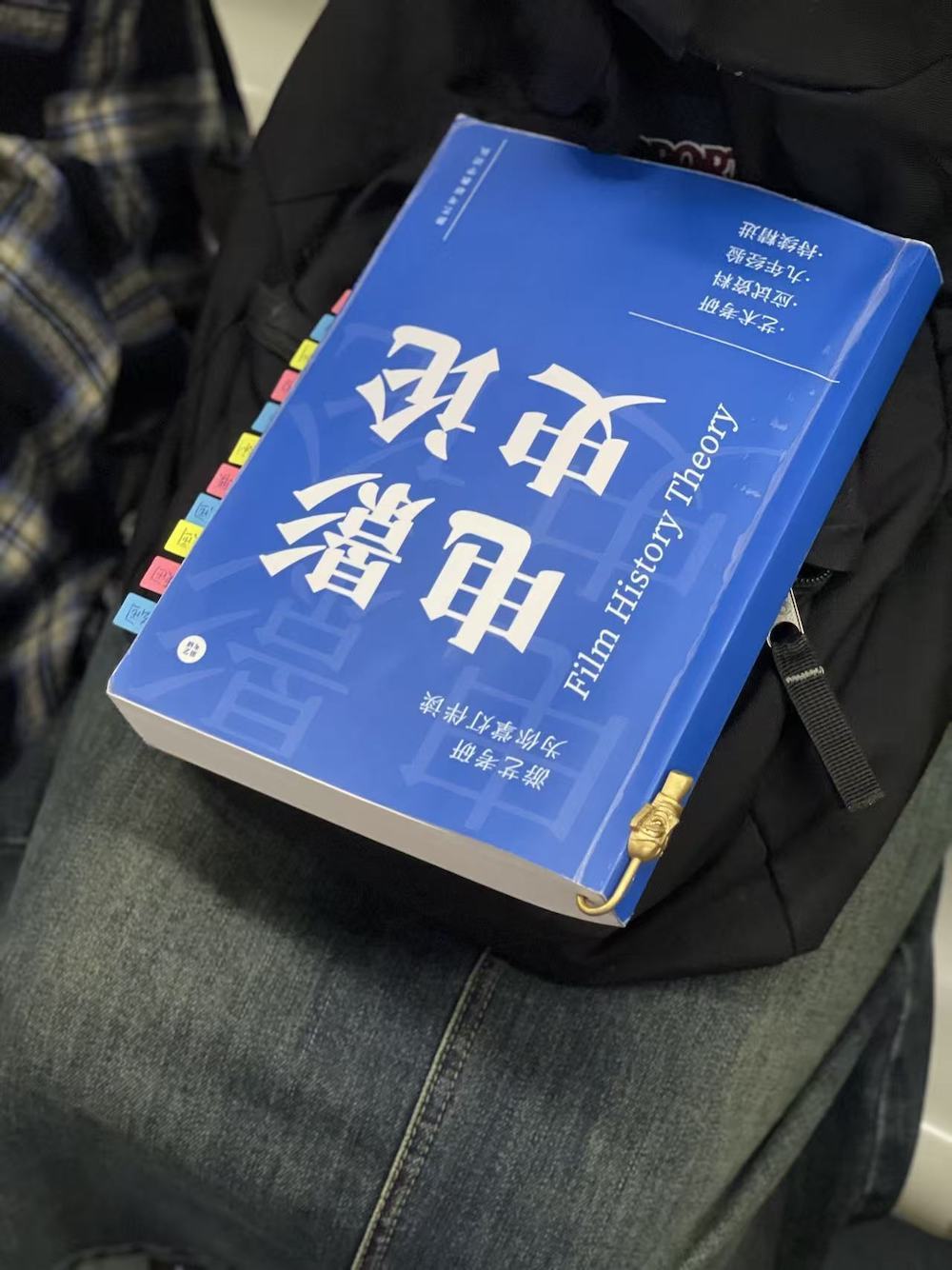 50.2025年8月23日。艺考辅导书,《电影史论》。她的书签有趣,来自三星堆。