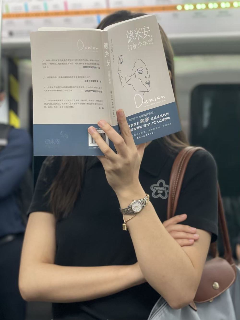 44.2025年9月4日。晚八点下班的路,她读《德米安:彷徨少年时》。很想知道她为什么会在这本书众多的公版版本中选择了这一版,但是我忍住了。