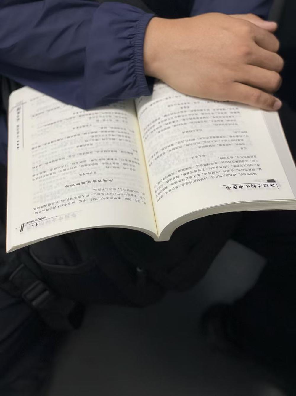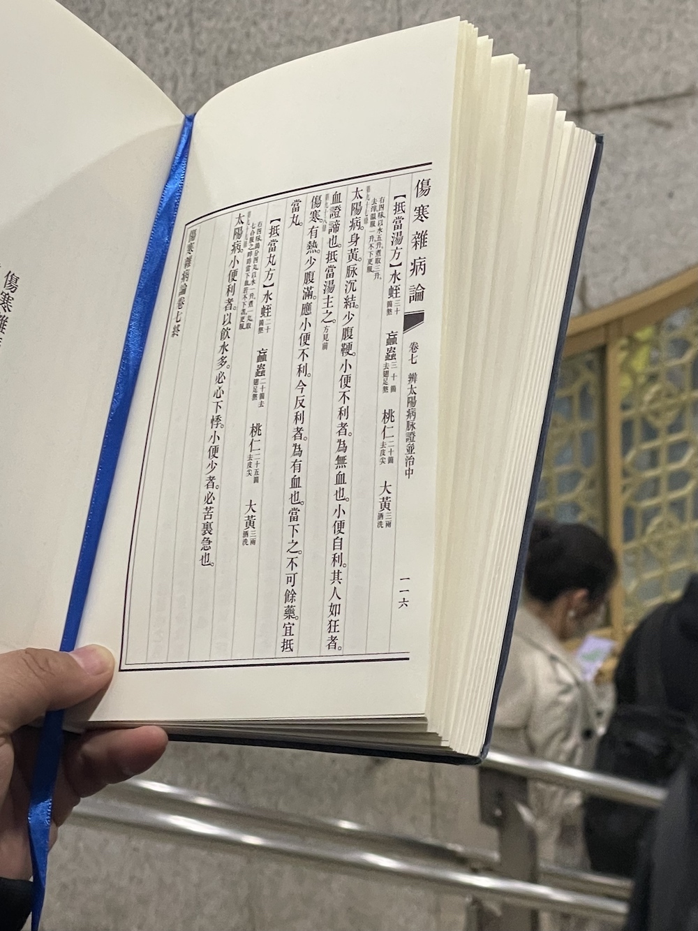 21.2026年4月3日。清明节前最后一个工作日,他上了电梯也一直在读这本《伤寒杂病论》。愿意读古籍,也就不介意以纸质形态阅读吧。