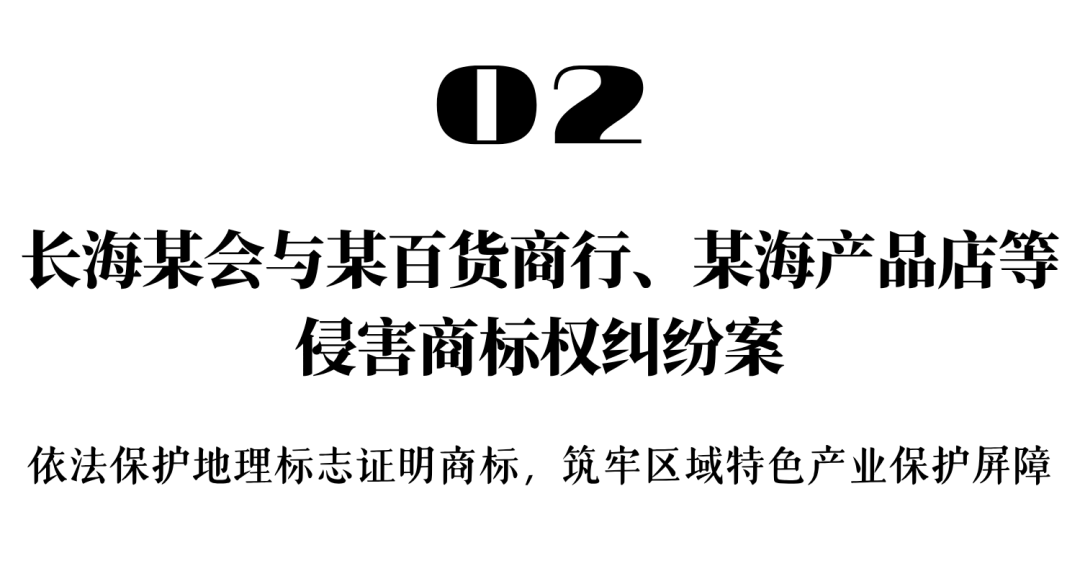“长海海参”依托辽宁省长海县独特的自然地理条件,以其优良品质在市场及消费者中形成极高知名度和美誉度。长海某会是第15879021号“长海海参”地理标志证明商标和核定使用于海参(非活)商品的第4904657号“长海”证明商标的权利人。某百货商行、某海产品店等未经长海某会许可,擅自在电商店铺及直播号名称中使用“长海海参”字样、头像中突出使用“长海”字样。法院经审理后认为,上述行为能够起到指示商品来源和产地的作用,构成对案涉商标的商标性使用。其所售海参并非来源于长海县,未经许可擅自使用案涉地理标志证明商标,导致相关公众对商品来源、产地、品质产生混淆和误认,构成对案涉注册商标专用权的侵害。遂判令某百货商行、某海产品店等立即停止侵权行为并赔偿损失。一审宣判后,某百货商行等主动履行判决确定的全部义务。