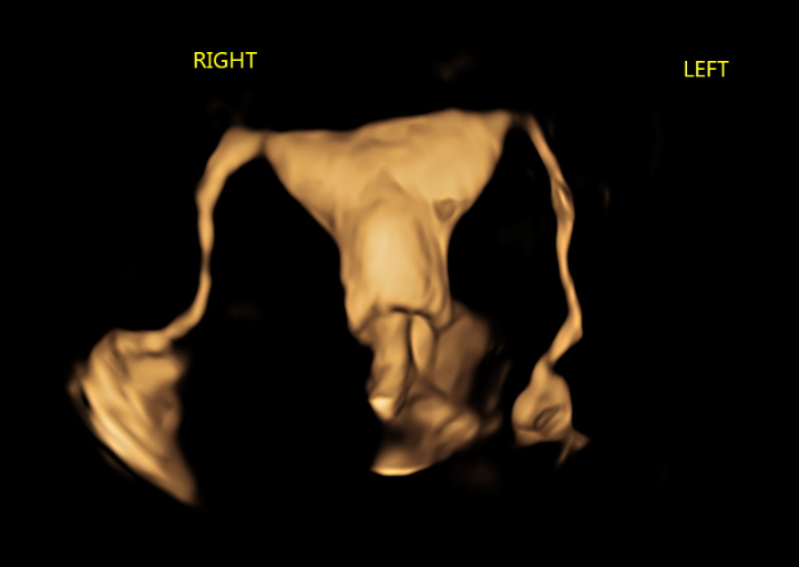 真正的造影阶段,随着4D模式启动,超声系统开始实时记录造影剂在体内的动态变化。造影剂经宫腔进入输卵管,其显影顺序、走行形态、速度快慢,都会被完整捕捉下来。操作过程中,探头位置应保持稳定,通过旋转重建轴来获得接近冠状面的显示,而不是频繁移动探头本身。这一点对于完整显示双侧输卵管尤为关键。