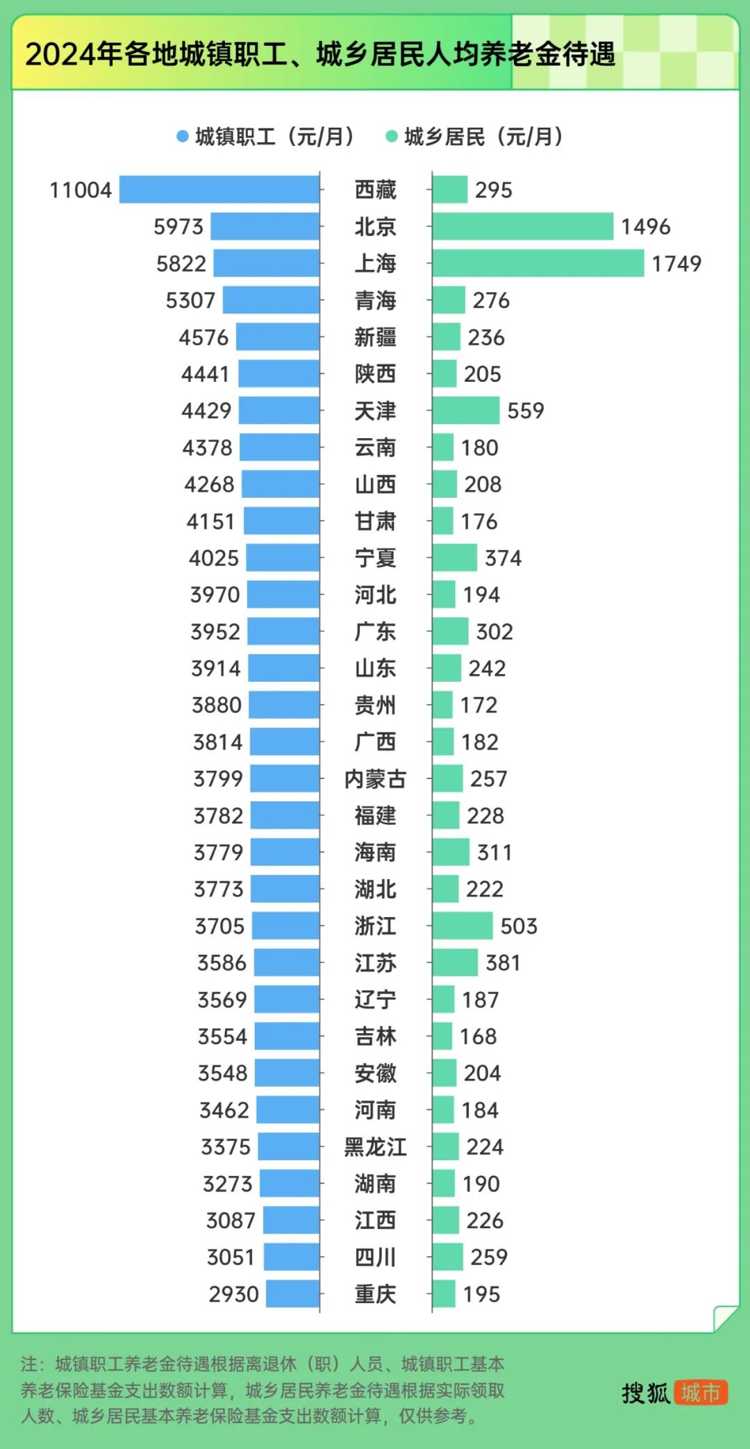 各省份内部城乡养老金差距如何?上海差2.3倍,全国最小