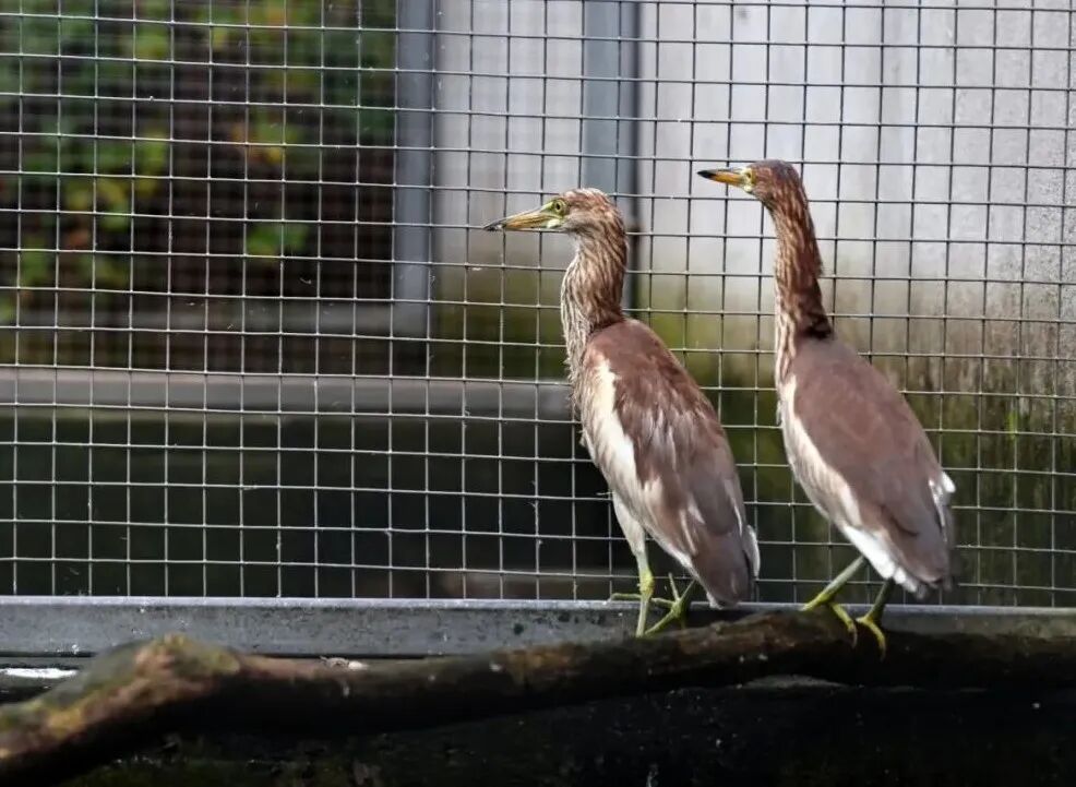 志愿者一直留心关注着两只池鹭