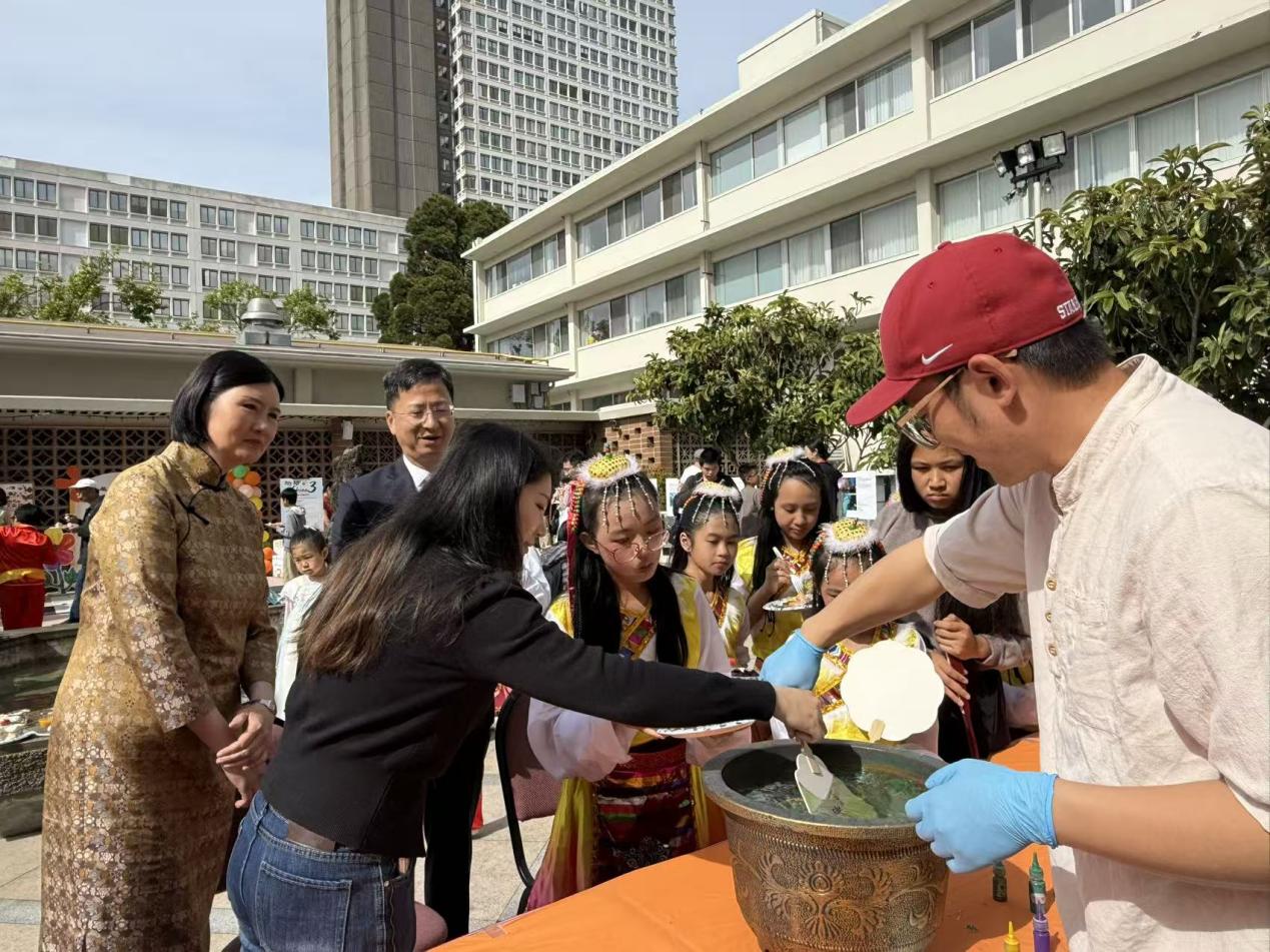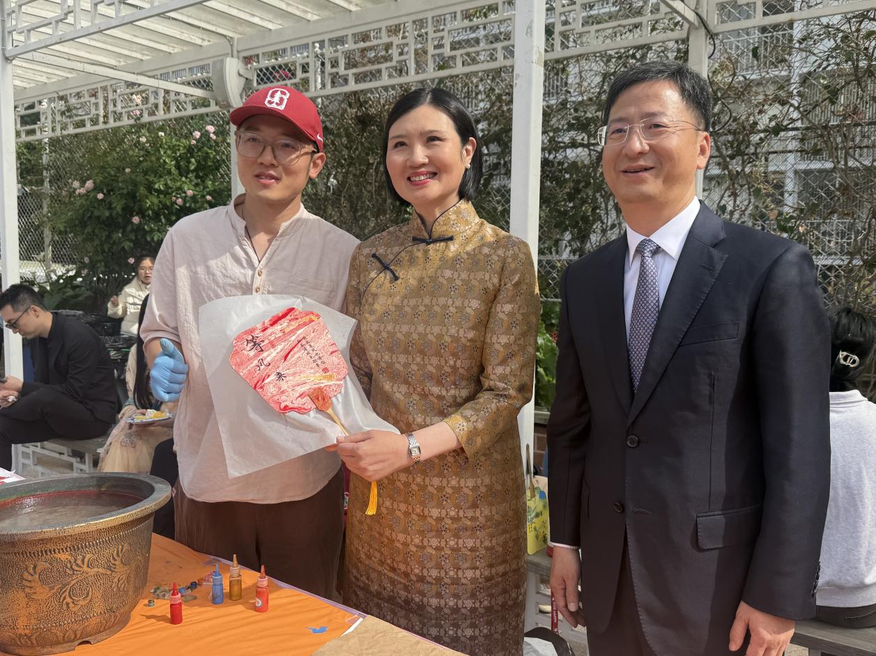 色彩斑斓的漆料在清水中晕染,大中小学师生们围在桌前认真学习非遗漆扇制作,调漆、拓色、成扇一气呵成,大家沉浸在体验中华优秀传统文化的浓厚氛围里。当地时间4月18日,中国驻旧金山总领事馆开展了主题为“中文:点亮多彩梦想”的2026年国际中文日庆祝活动,江苏开放大学副教授、斯坦福大学访问学者、历史学博士刘西诺携非遗项目“漆扇制作技艺”,面向本地师生开展沉浸式文化体验与学术交流,推动中华优秀传统文化海外传播。