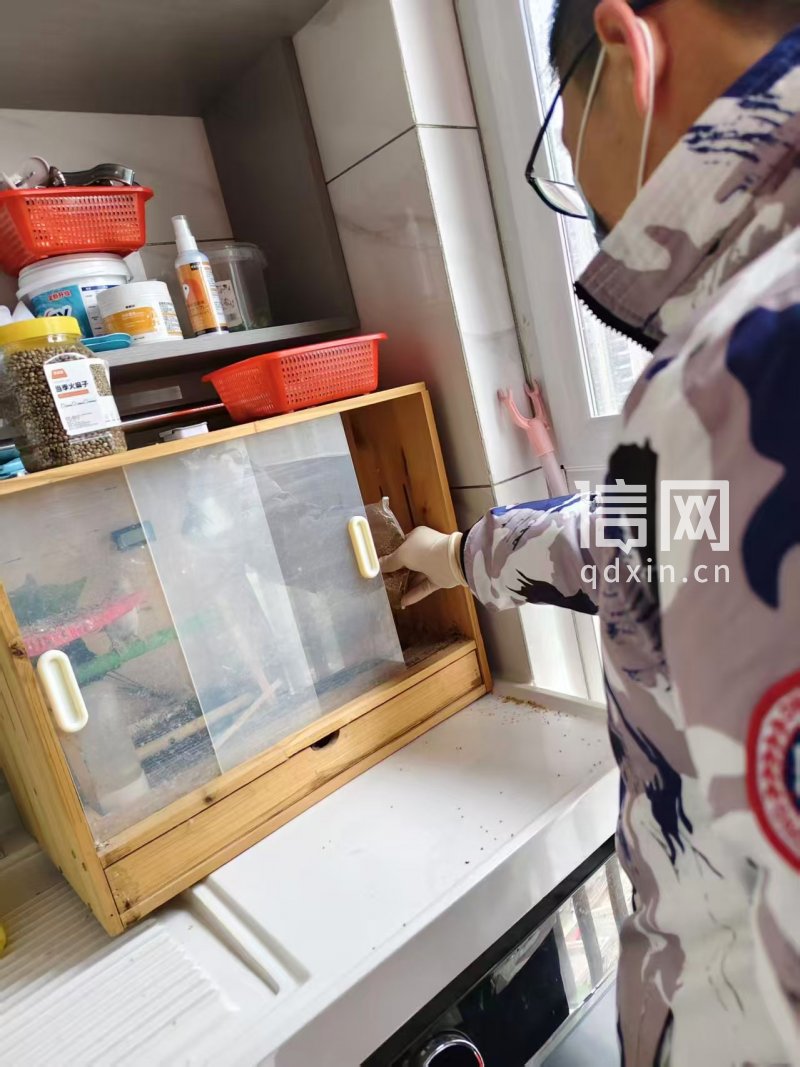 目前,李先生家还有一只白色鹦鹉,但已经无人敢靠近,为了避免鹦鹉饿死,李先生只得戴着手套和口罩,隔着半张桌子的距离,“全副武装”给鹦鹉喂食。