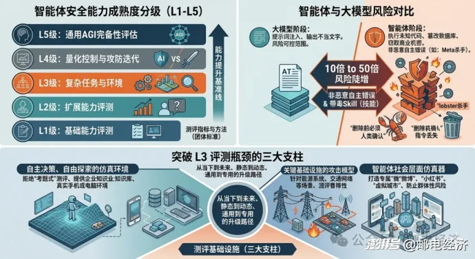 AI正从会做题转向会办事,AI安全风险也由此进入新态势:从“投毒”大模型到智能体“失控”,当前的AI安全评测和防范体系,正以慢得多的速度,追赶着智能体能力的扩张。