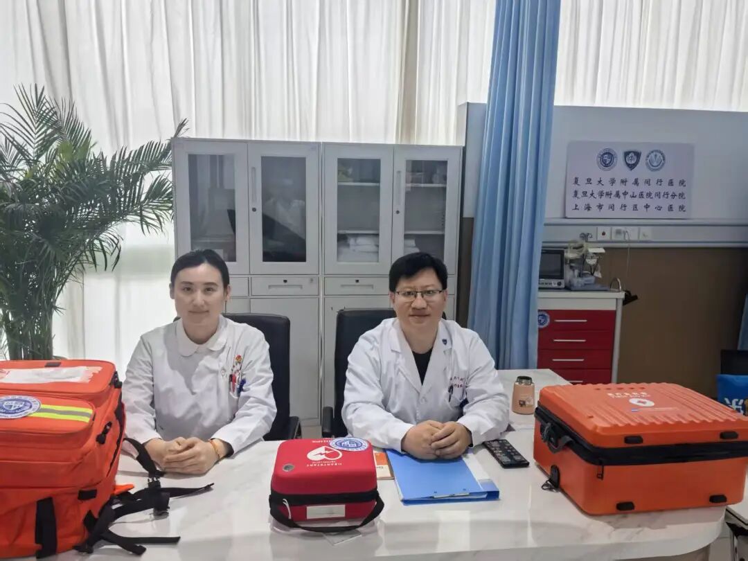 闵行区中心医院邵庆波(右)、刘雪婷(左)在保障点执勤