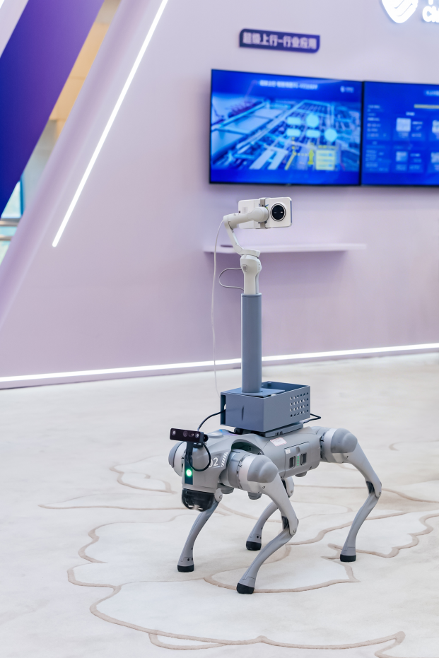 工作人员介绍:超级上行网络是具身智能加速普及、实现规模化商业落地的核心支撑与坚实底座,网络性能直接决定机器人的操作精度与任务成功率。“小天”通过5G-A超级上行技术,将“所见、所听”实时上传云端大脑并推理,实时下发控制命令,实现低时延语音交互的类人流畅感,并实现多模态感知协同下的引导与自主跟随能力。