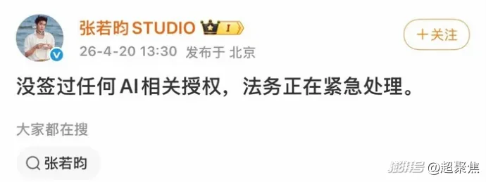 更抽象的是,张若昀、于和伟工作室站立马出来辟谣,表示未签过任何AI相关授权。好在龚宇后来找补说,那名单“只是表明他们同意去做AI入驻的意愿,只是表达了谈的意愿,跟实拍规则一样,具体合作还要细谈”。