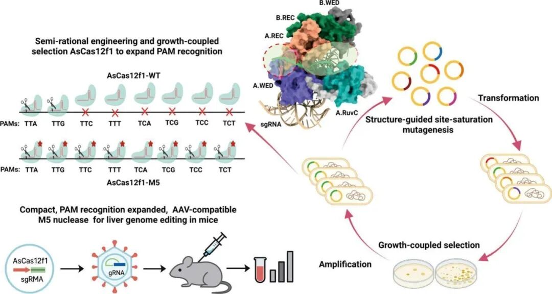 杨广宇/李大力合作开发超迷你CRISPR基因编辑器AsCas12f1‑M5,实现PAM扩展与体内高效编辑