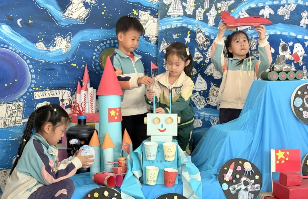 希望幼儿园的孩子们巧用收集来的废纸壳,制作出形态各异的地球模型,在动手实践中懂得了资源循环利用的意义。