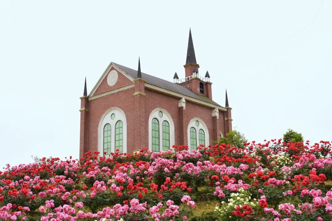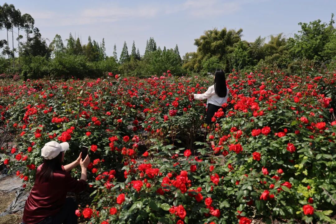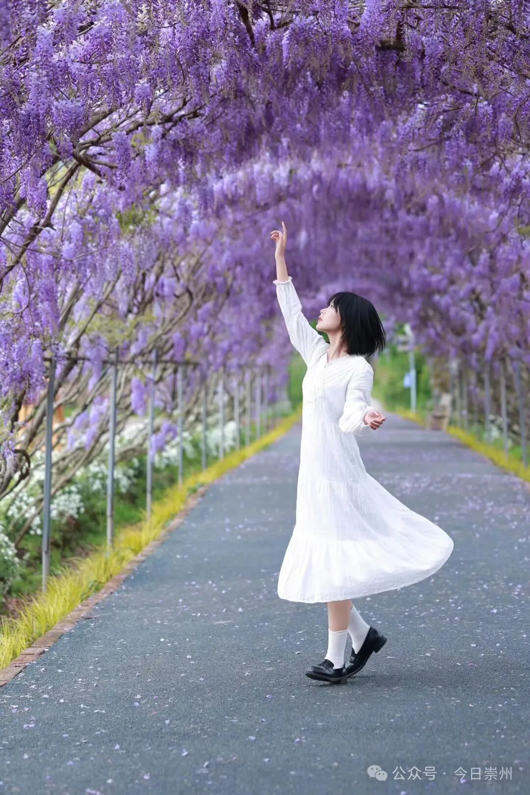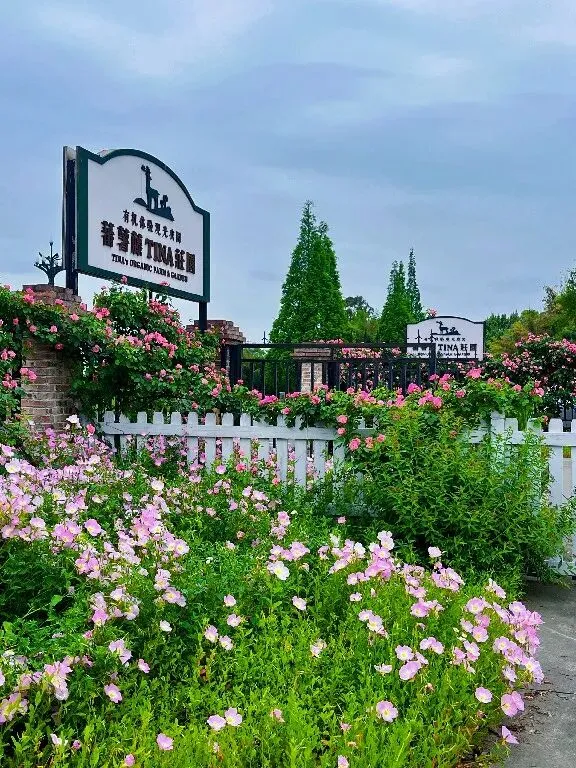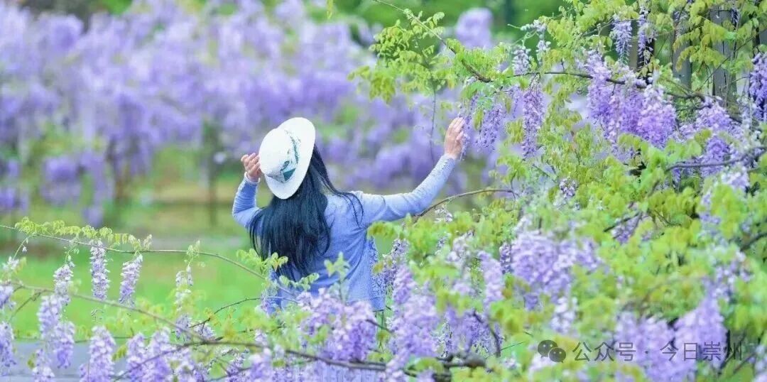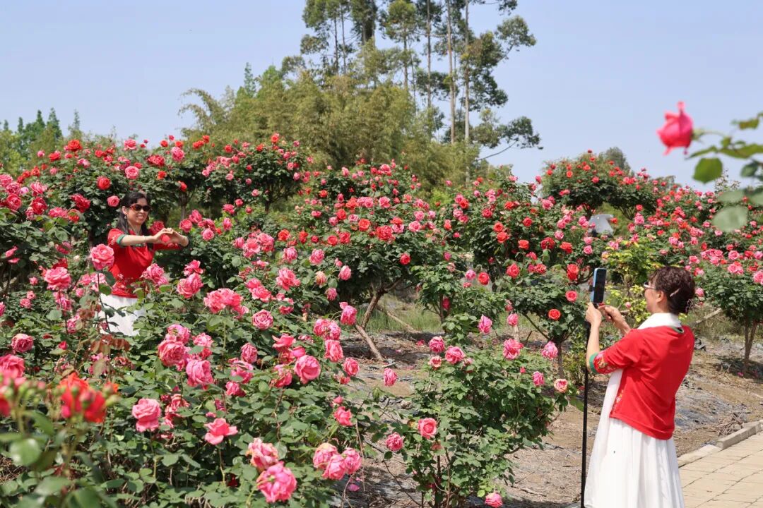 数百米蔷薇花藤缠绕着铁艺栅栏