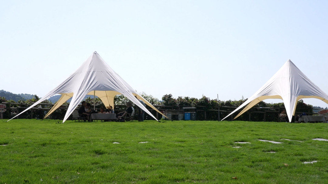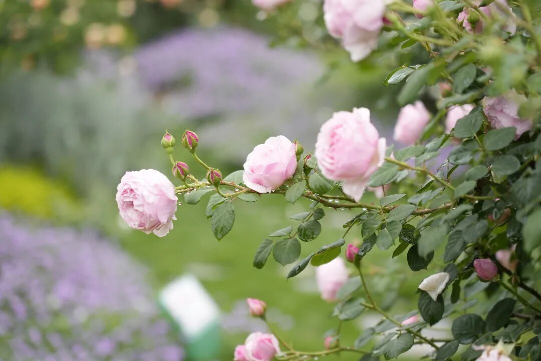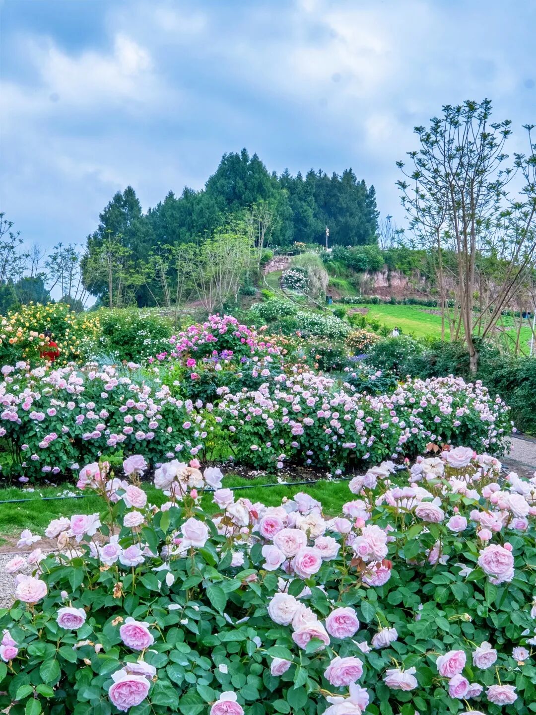 缀以蓝雪花、绣球花、熊猫堇等草木