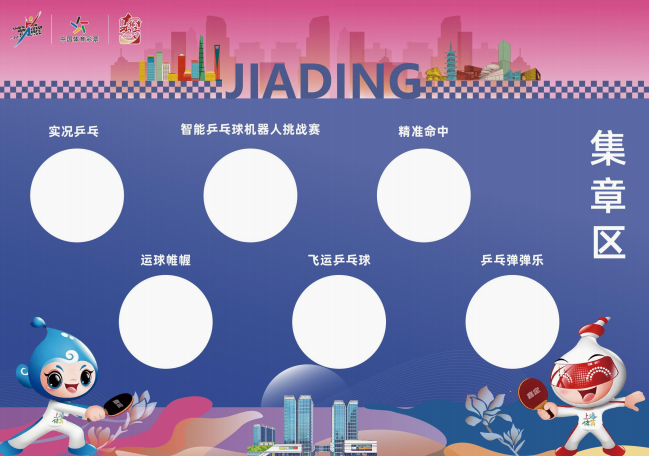 观赛不过瘾?来嘉年华亲自上手体验!现场设置六大乒乓互动项目,科技感与趣味性拉满,完成挑战即可集印章兑换礼品(数量有限,先到先得)。