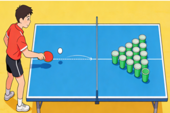 距道具板3米挥拍击球,6次机会打进任意纸杯即可。像“乒乓版”投壶!