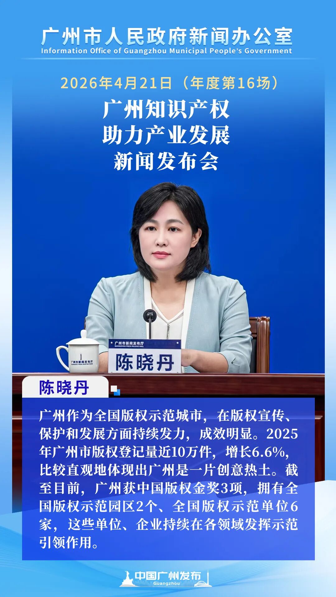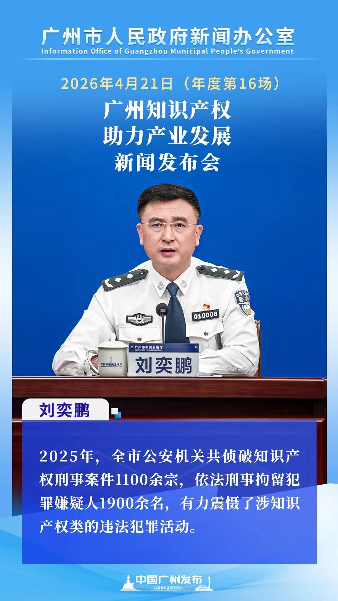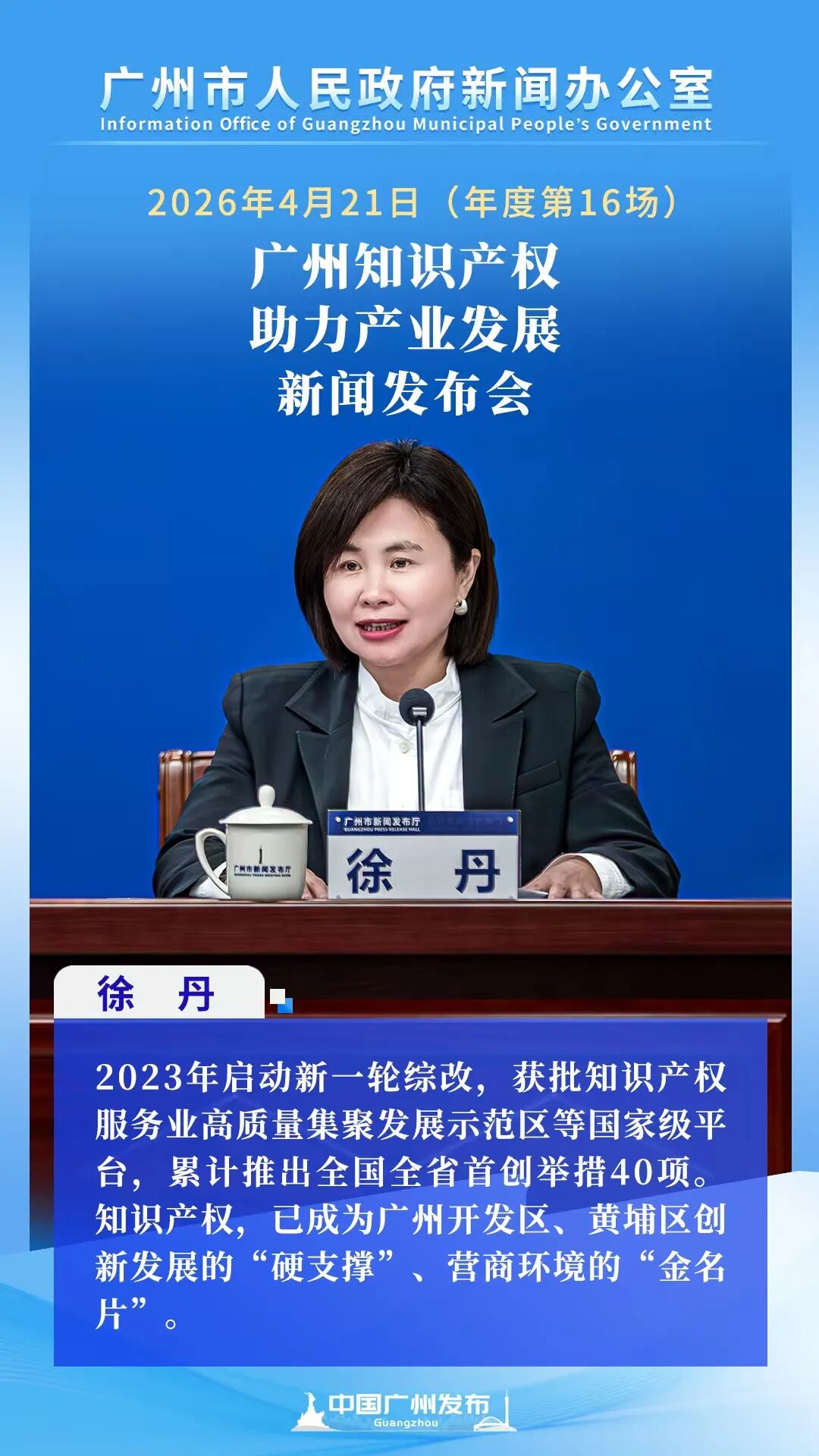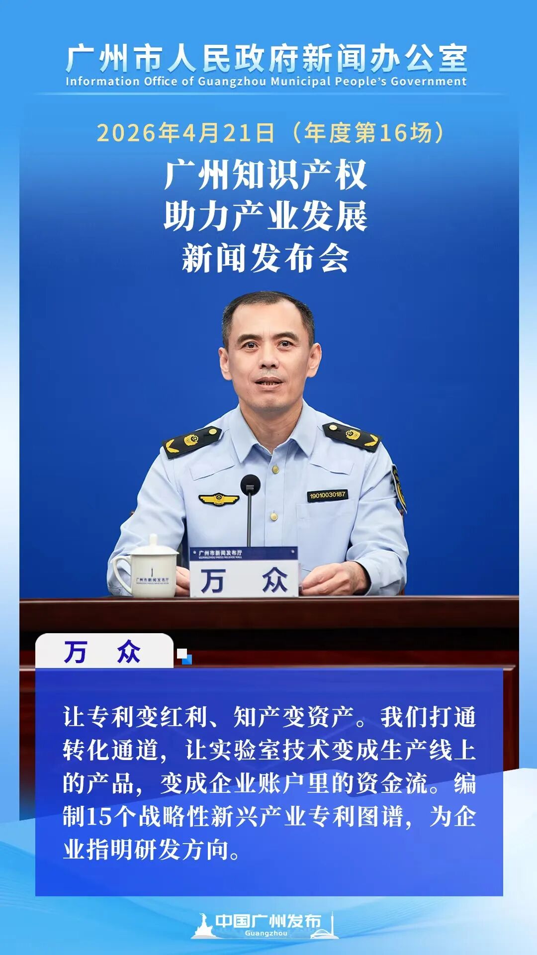 “对企业来说,知识产权是竞争力,是看得见的资产。对市民来说,知识产权会带来好的产品、好的服务。”4月21日,在世界知识产权日前夕,广州市人民政府新闻办公室召开广州知识产权助力产业发展新闻发布会,现场的一番发言道出了知识产权与企业发展、民生福祉的紧密关联。发布会上,广州发布知识产权助力产业高质量发展成果,一系列亮眼数据与务实举措,勾勒出这座城市全力打造知识产权保护高地、创新高地、运用高地,以知识产权赋能产业升级、推进两业融合的清晰路径。