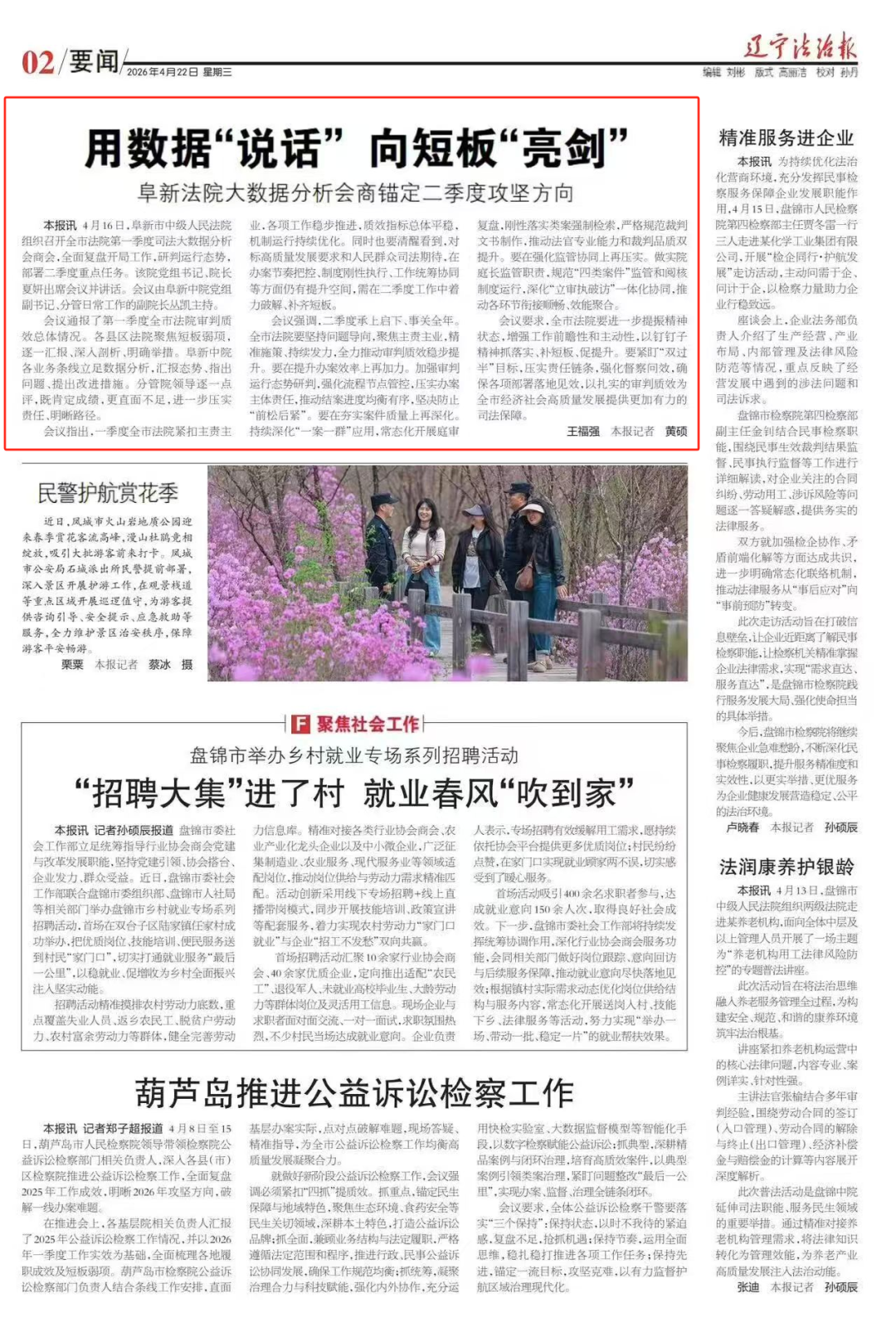 辽宁法治报头版!聚焦阜新法院这项工作
