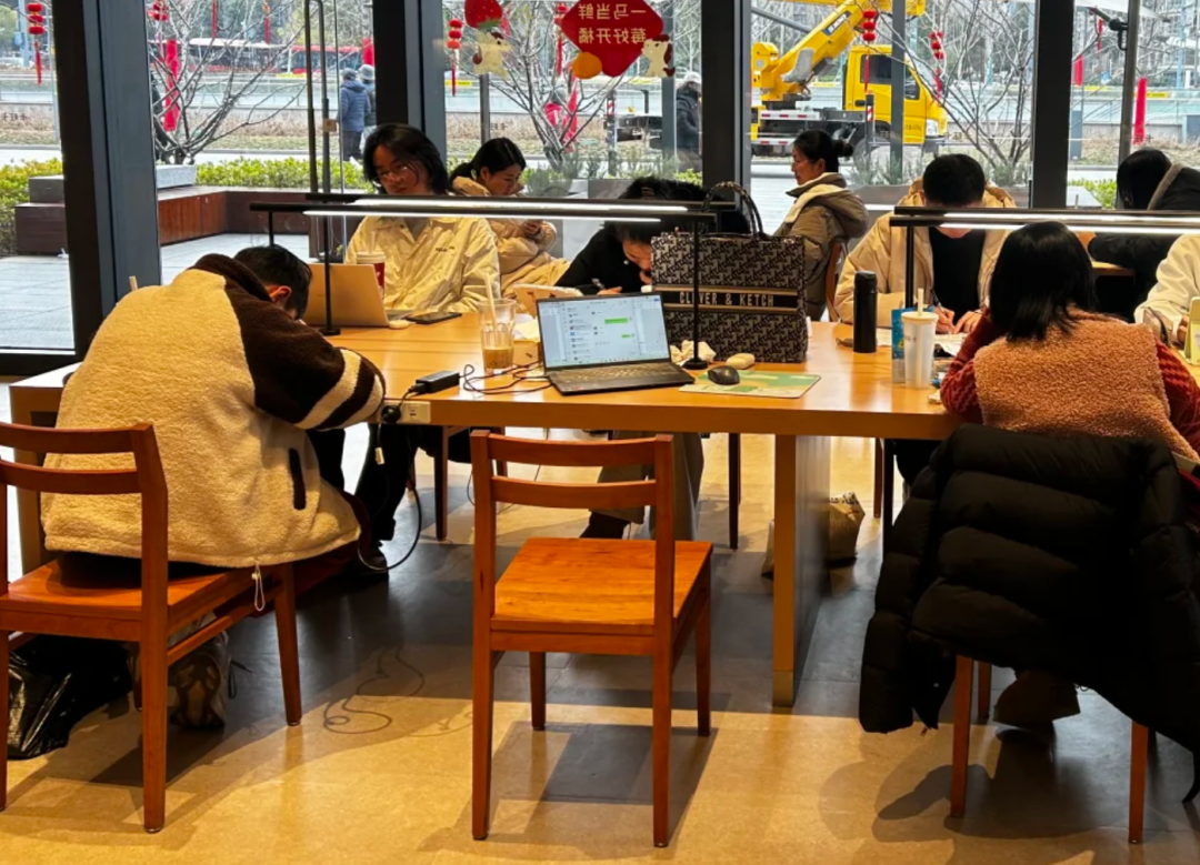 卡旺卡门店的“自习室风”装修,最初就是为了给人一个“释放压力、放松心情”的地方。卡旺卡联合创始人马启旋在2022年的一次采访里提到,即便你暂时不想购买任何饮品,这里的店员也随时欢迎你进来坐坐,有温水和冰水免费提供,不设密码的WIFI可以蹭网,还能免费为手机充电。只不过,当时卡旺卡还只有26家门店。