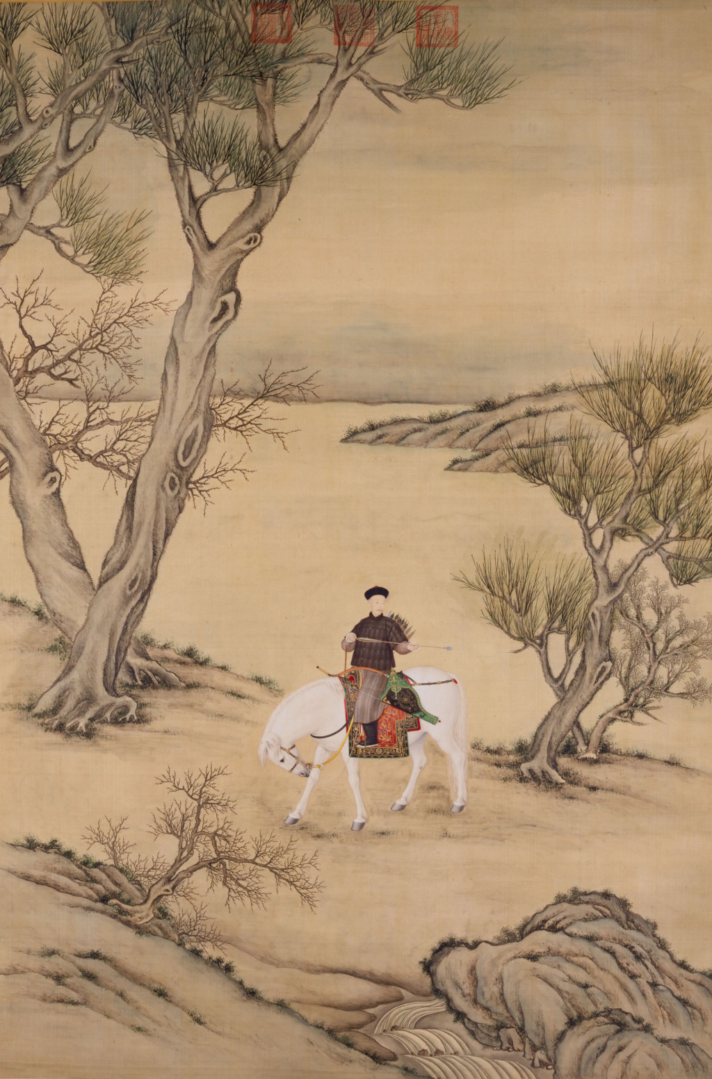 郎世宁(1688–1766年)等 《弘历挟矢图》 乾隆七年(1742年) 绢本设色立轴 故宫博物院 © 故宫博物院