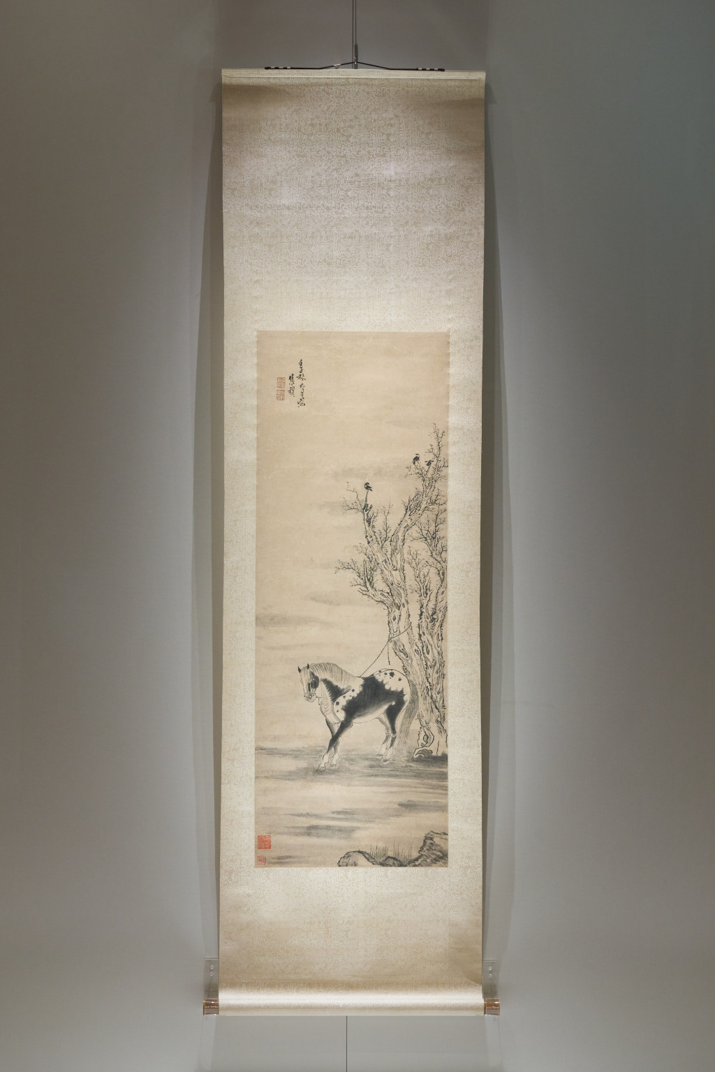 张穆(1607–1683年) 《树下骏马》 康熙十一年(1672年) 纸本墨笔立轴 香港艺术馆藏品 © 香港故宫文化博物馆
