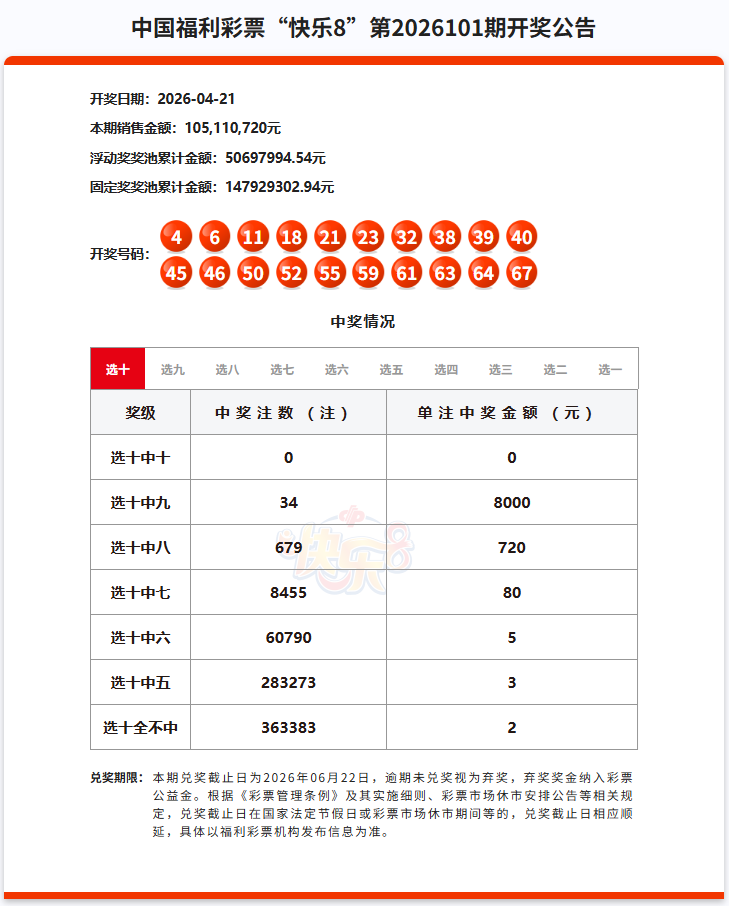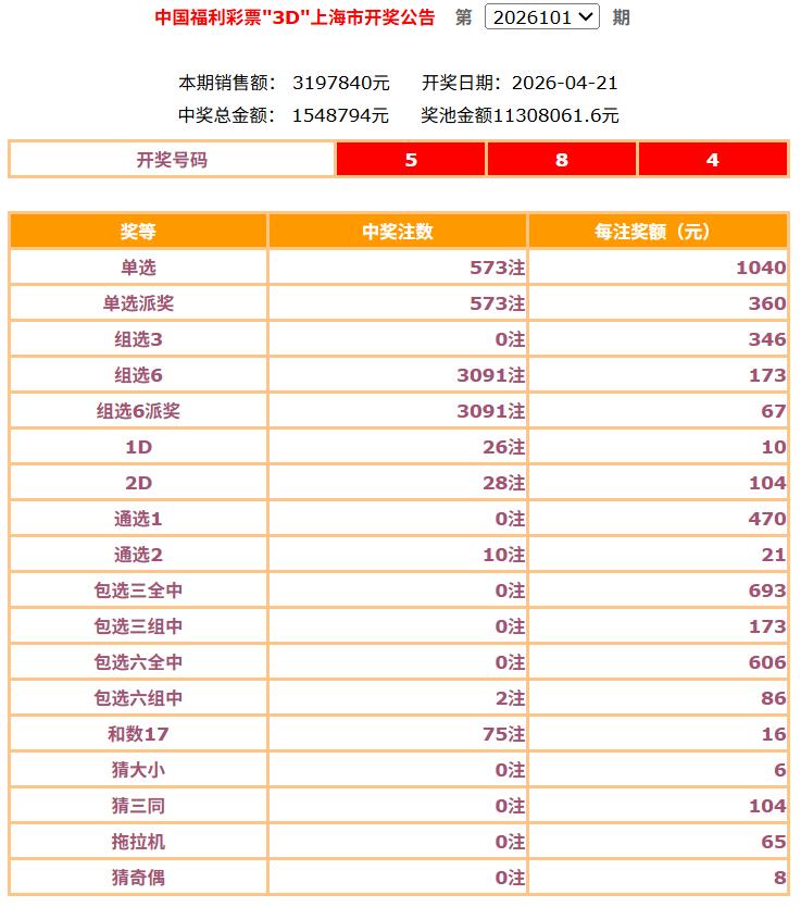 4月21日福彩开奖公告