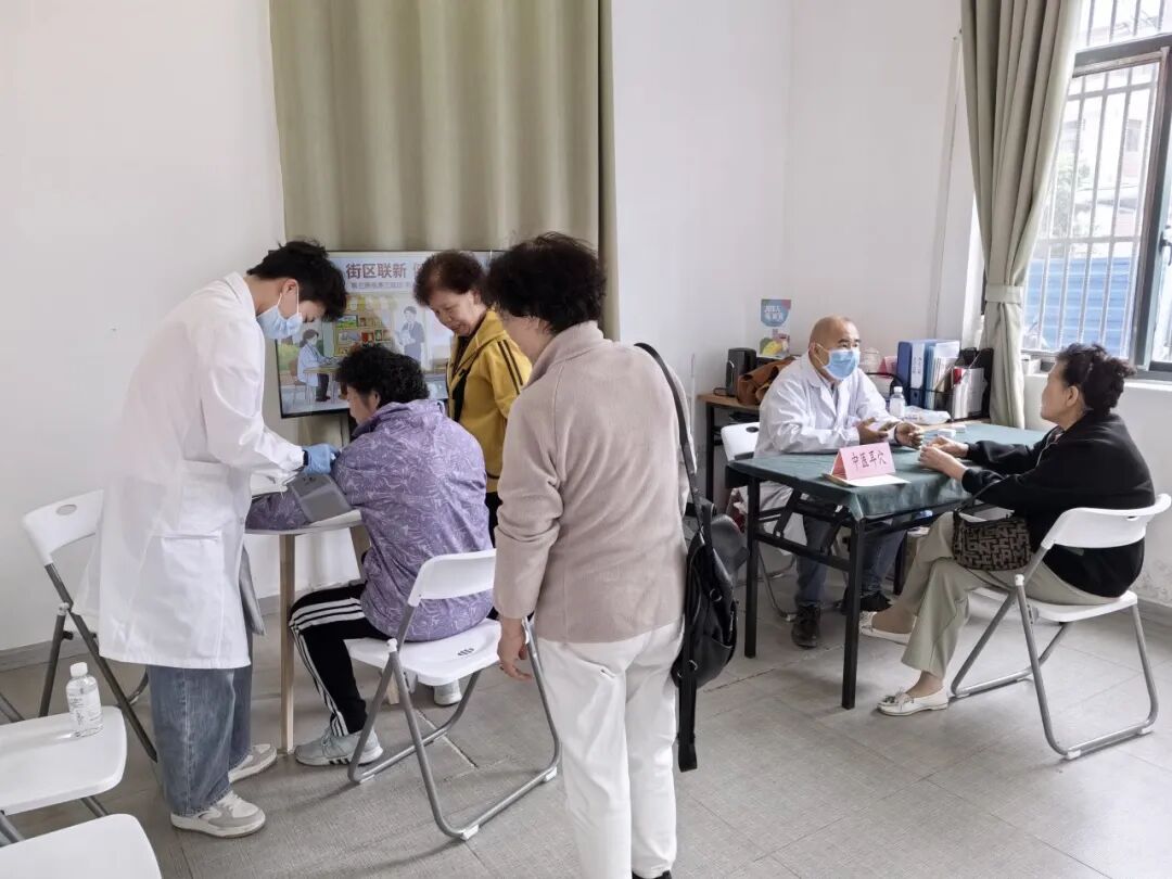 在健康服务区,新泾镇社区卫生服务中心的医生带来的中医耳穴体验备受居民及商铺人员青睐;金之福护理院的医护团队则提供量血压、全科义诊及体检报告解读服务,让居民及商铺人员在家门口就能享受到专业的医疗关怀。