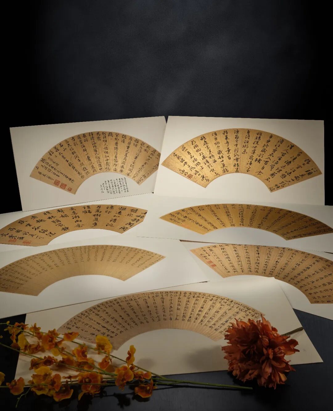 古代书法板块中,王南屏旧藏的文徵明家族七帧金笺扇面尤为难得。这并非完整册页,而是王南屏先生数十年陆续收藏所得,其中文谦光的作品极为少见,内容多为自作诗。王南屏之子王檏仁在著作中记载,父亲仅凭鉴赏眼光便断定某张文徵明为晚年作品,多年后经资料考证得以印证,这恰是传统鉴赏家“先感觉、后考据”的智慧体现。