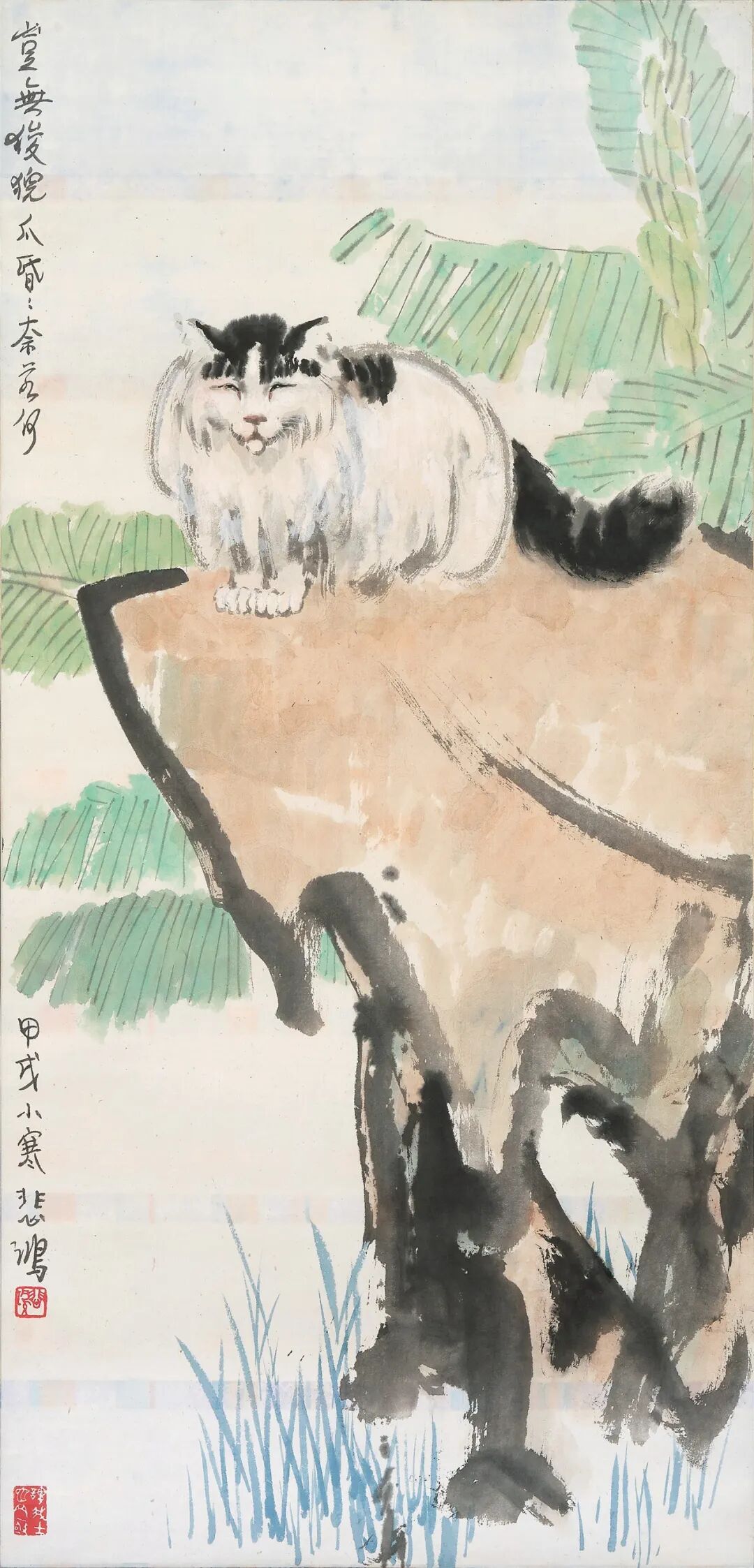 徐悲鸿《昏昏奈若何》(1935年):上款人为香港骆克道命名者骆克爵士,是二人交往的最后物证,这件作品至今保持着三十年代的徐氏原裱。画中猫的慵懒神态暗藏隐喻,呼应了徐悲鸿以“睡狮”象征困顿中国的创作母题。