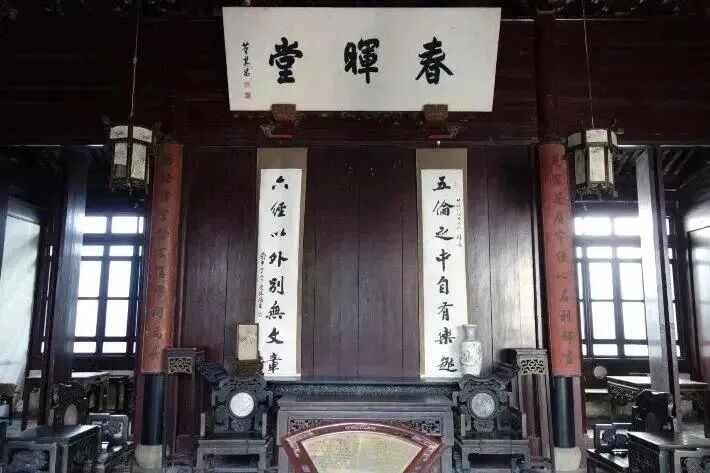 孝道不仅包括对父母生前的奉养,更包括对去世父母与历代祖先的祭祀,故而家祠、义庄等祭祀空间,往往位于园林的重要位置,凝聚家族传承。园中的匾额楹联、碑刻等装饰,则以日常可见、可感的文本图像,将孝文化教育遍布各处。