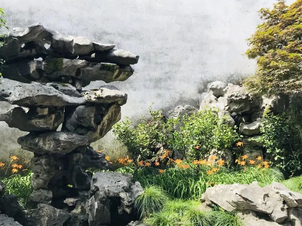 网师园湖石萱草 图源:苏州园林官微