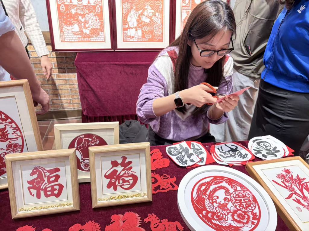 漳州非物质文化遗产展示馆内,游客体验漳州非遗剪纸。 澎湃新闻记者 胡雅婷 图