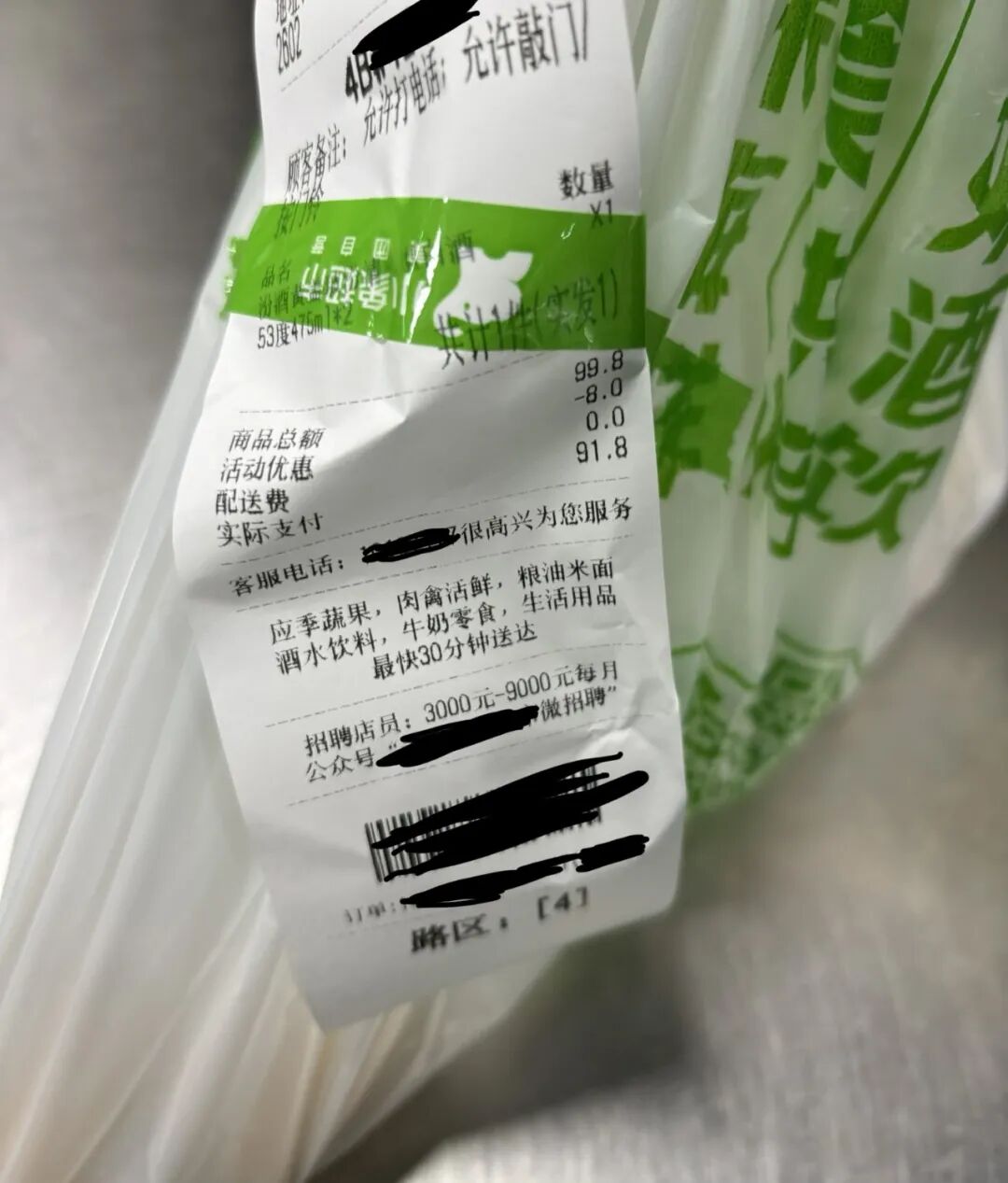 ◉顾客收到的小票上,分拣员的姓名会写在订单编号的后面。