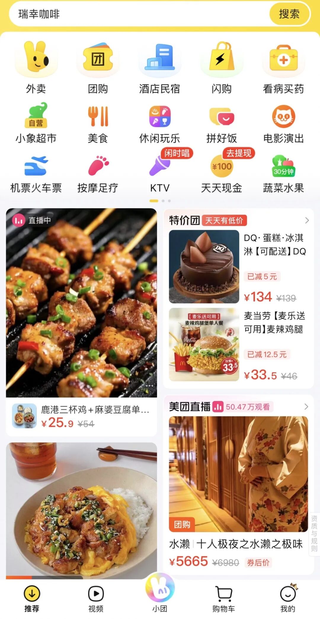 ◉美团app首页。小象超市目前在全国20个核心城市设有近千家站点。图源:美团app截图