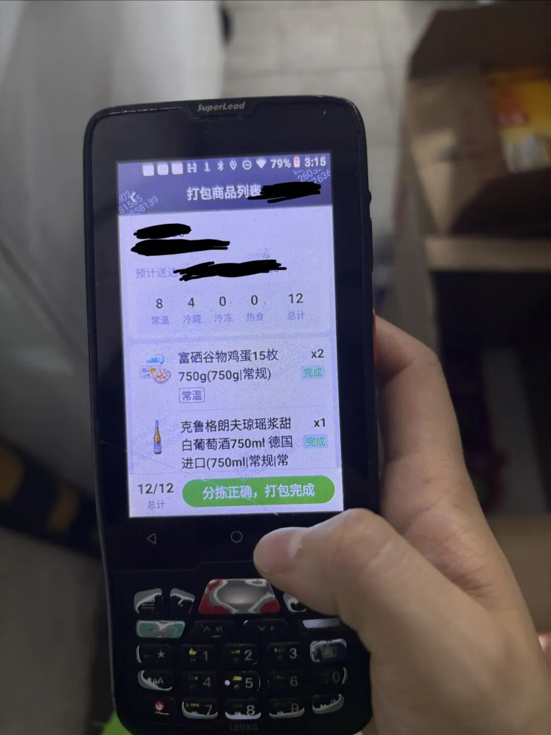 ◉PDA是一种用来接单和扫描商品的手持设备。在前置仓,PDA如同工厂中的传送带,左右着分拣员的身体和货物移动的速度和方向。