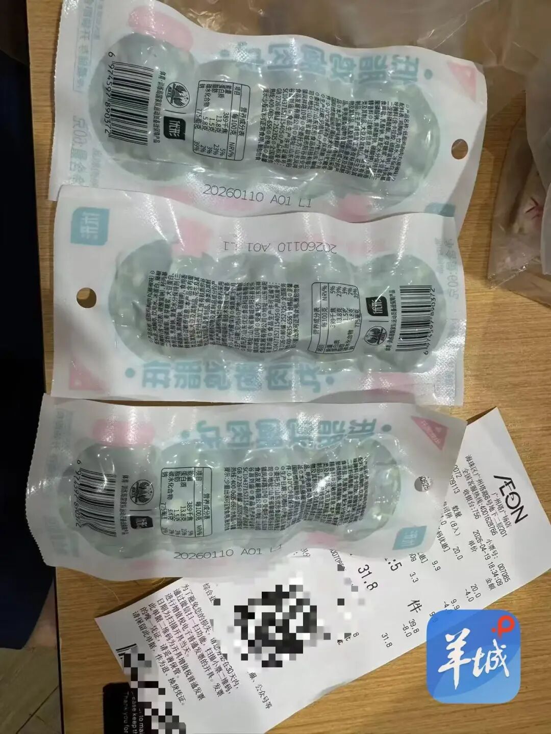 4月22日,羊城晚报“记者帮”联系上报料网友孙先生。他向“记者帮”表示,自己是在4月19日下午在永旺超市(广州塔广场店)购买了3包优形低脂鸡胸肉丸藤椒味60g(价格合计9.9元),在购买完毕后,他直接在永旺超市的食用区进食。