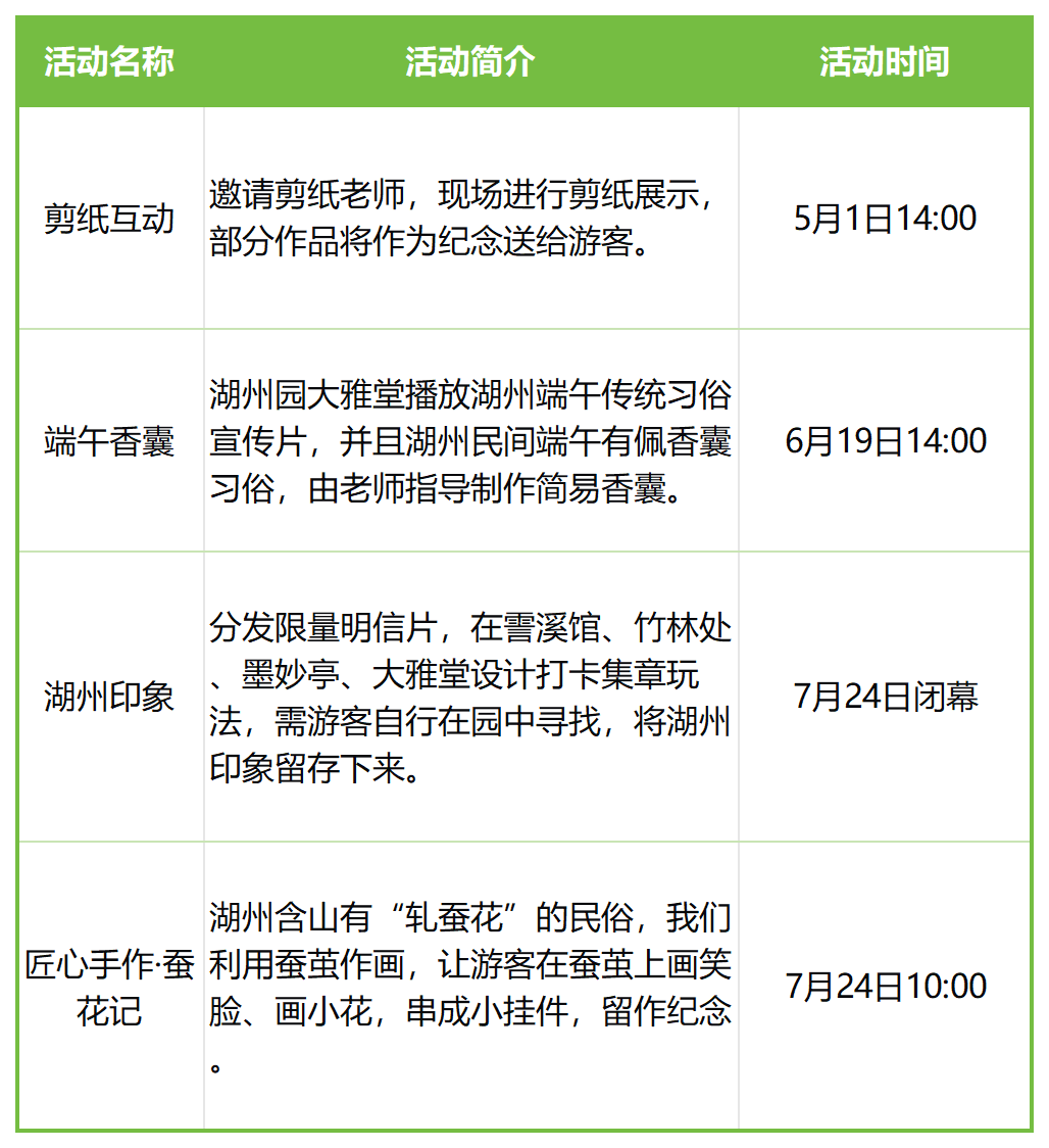 浙山浙水展园会期活动安排