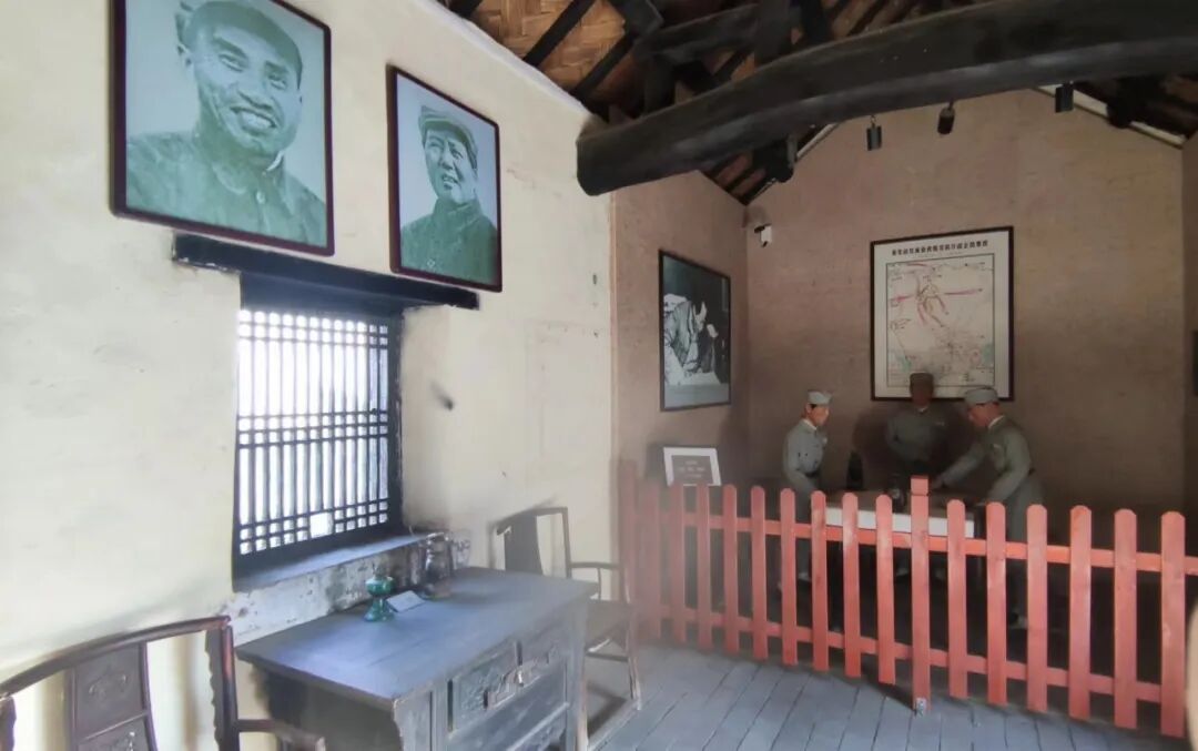 馆内展有陈毅司令员当年使用的桌椅床案、摇把子电话机、战前敌我形势和作战形势图等。