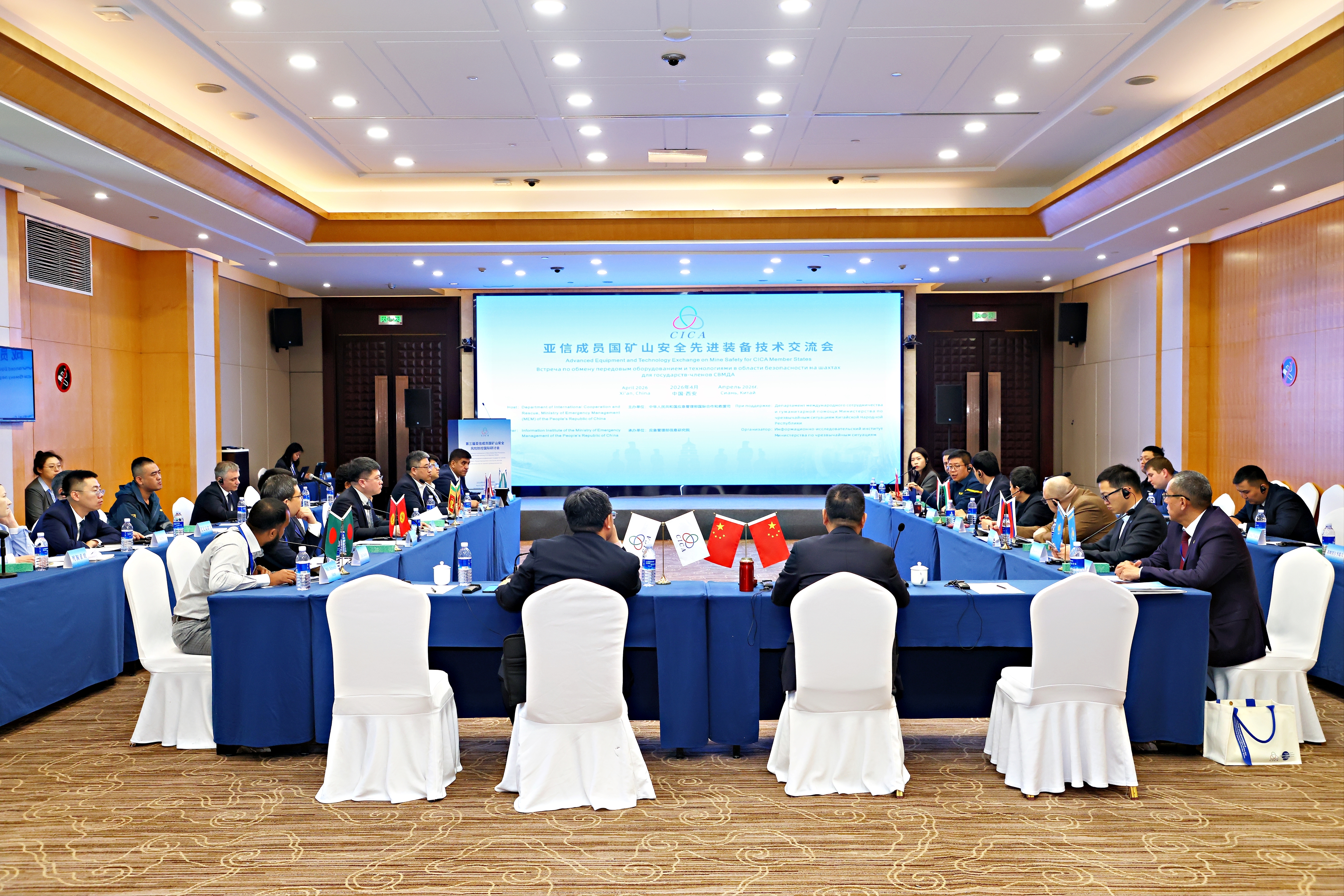 4月14日-17日,由应急管理部国际合作和救援司主办,信息研究院承办的第三届亚信成员国矿山安全风险防控国际研讨会、亚信成员国矿山灾害治理专题培训及亚信成员国矿山安全先进装备技术交流会系列活动在西安举办。国家矿山安全监察局副局长裴文田,部国际合作和救援司副司长刘顺章,信息研究院副院长刘文革,陕西省应急管理厅厅长李雄斌出席活动并致辞,亚信副秘书长张凌视频致辞。来自孟加拉国、哈萨克斯坦、吉尔吉斯斯坦、俄罗斯、斯里兰卡、塔吉克斯坦、泰国、土耳其、乌兹别克斯坦等国家的矿山安全监管部门和矿山企业代表,国内重点矿山企业相关负责人、科研院校的专家学者以及矿山装备制造企业的技术人员共100余位代表参加了培训、会议研讨和先进装备技术交流活动。