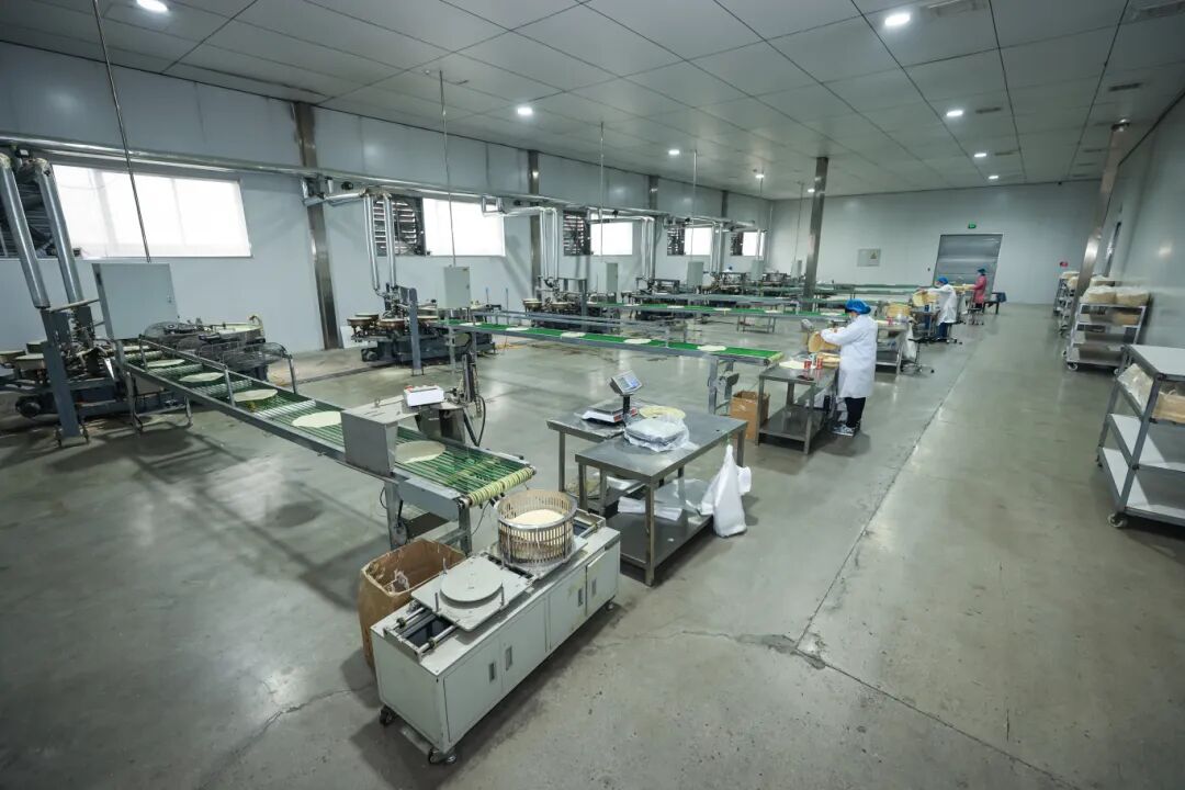 然而,门店数量激增的背后,供应链不稳定的难题逐渐凸显,成为制约品牌发展的核心瓶颈。初创时期,“二妮”菜煎饼的饼皮依赖外购,受地域、生产规模限制,常常出现口感、供应、卫生不统一等问题,直接影响品牌口碑。秉持“品质是餐饮生命线”的理念,2018年,企业果断自筹资金建成专属煎饼生产工厂,正式启动产业链升级之路。经过无数次试验调试,最终成功研制出专属煎饼机,实现饼皮标准化生产。如今,标准化生产线上,设备精准温控、匀速压制,产出的饼皮薄脆均匀,经自动打包密封后,既保证了全国门店口感统一,也大幅提升了生产效率。