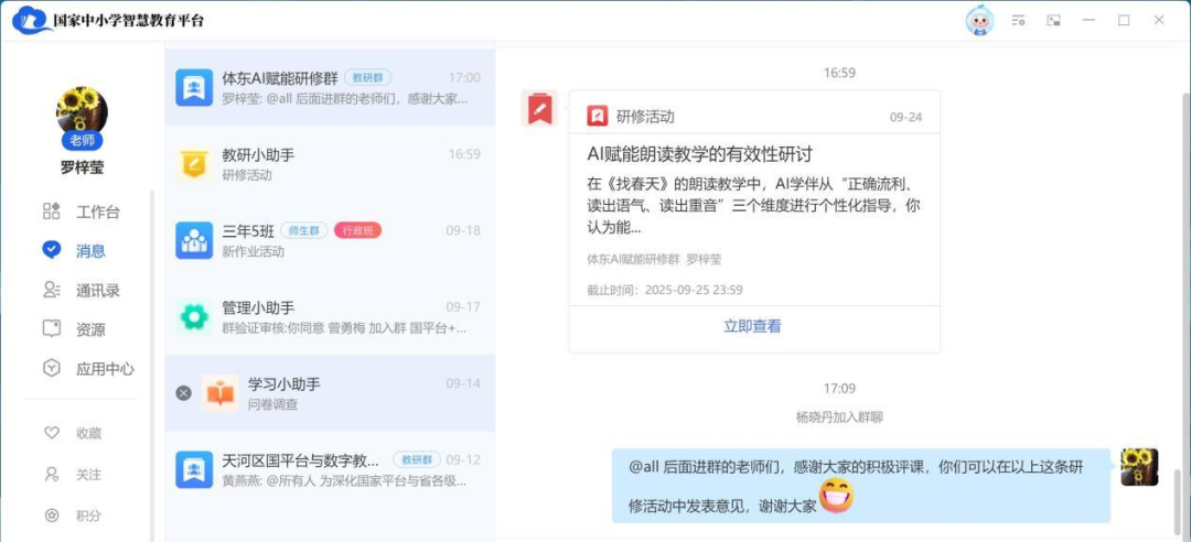 以前总觉得人工智能离我们一线教学很远,是“高科技”。自从参与了区里的“云山论课”和共同体教研,我开始尝试用AI工具辅助备课、生成情境、分析学情。最大的感触是,它真的把我从一些重复性工作中解放了出来,让我有更多时间去关注每个学生的个性化需求,去设计更能激发他们思维的活动。技术不是冷冰冰的工具,它成了我的“教学伙伴
