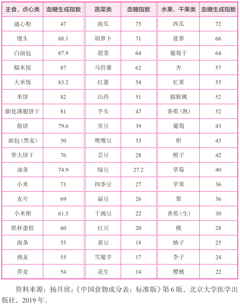 高GI食物进入胃肠后消化快、吸收率高,葡萄糖释放快,使得血糖升得高。食物的GI值越小,消化吸收越慢,转化成葡萄糖的能力也越弱。
